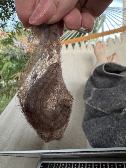 Finding the Plaza Principal again proved to be another hair-raising experience, as we wound higher and higher on smaller and smaller roads––finally ending up at a castle-like casa with barely enough room to turn around in a space bounded by the castle walls on one side, a sheer drop-off on the other. We finally found the plaza, and an Italian restaurant with Peruvian music. Bob was happy. When we returned to our room, Bear was eventually coerced out from under the bed with tinned salmon and was happy once we’d turned out the lights and flipped on the tube. “The Effect of Gamma Rays on Man-In-The-Moon Marigolds” was on in English with Spanish subtitles––a movie I’d been wanting to see again complete with Spanish lessons. Now I was happy, too.