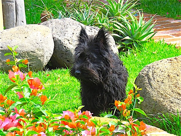 Yes, I was surprised that Morrie took so well to being pampered with an on-site bath, blow-dry, grooming and pedicure. (This enterprising young man has started a business where he comes to your house to groom and wash your dog. He seems to be popular as he was booked solid for a week. Fortunately, he had an appointment with a dog a block away from me so although I’m 5 km. out of town, he just worked me in after his other appointment.) Morrie was a bit rank. Hated to leave him with the house sitter in that condition. And yes, I was proud of the boy. And yes, he immediately went down and rolled in the dirt and the grass. A fella’s gotta have some pride, much as he seemed to enjoy the attention.