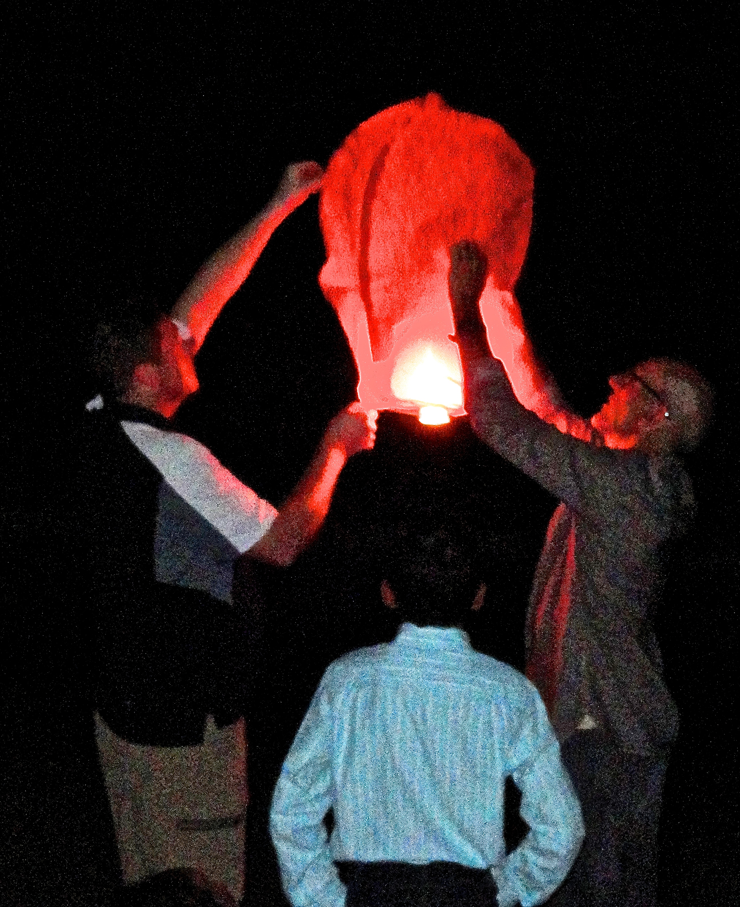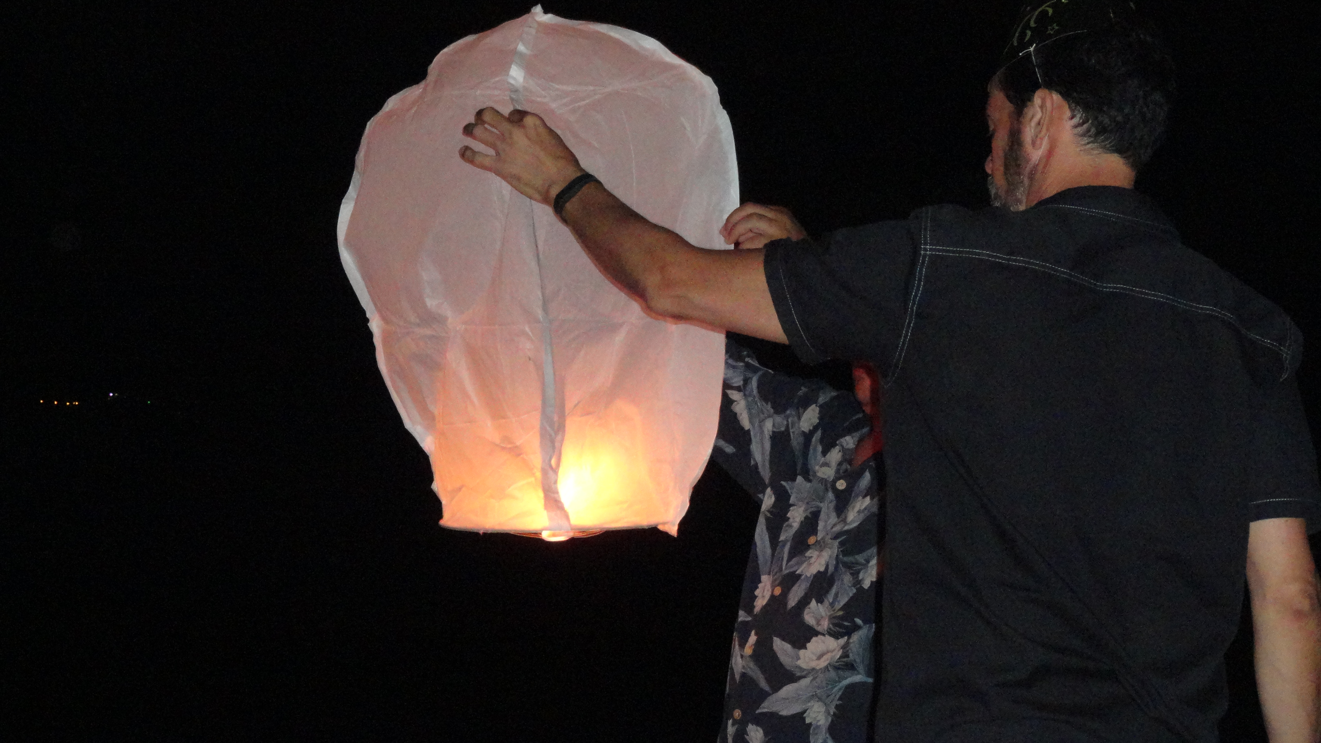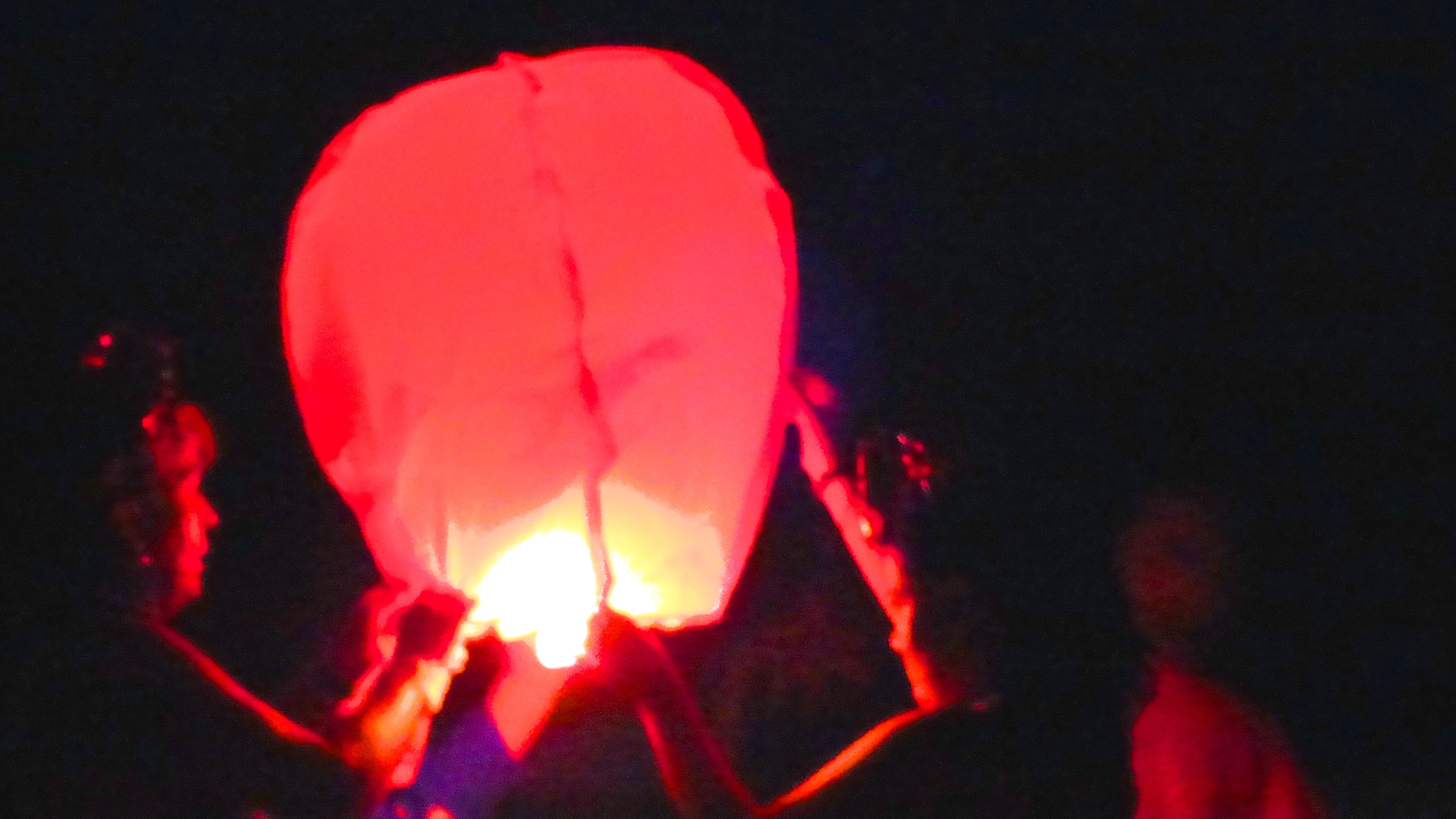 Very few fell to the ocean within our sight, and thanks to a calm night with little wind, none that I saw tipped to burn up during the launch. The sometimes dozens of balloons visible at the same time seemed to be either embers fallen from the near-full moon above or lost souls lifting to join one larger soul above.