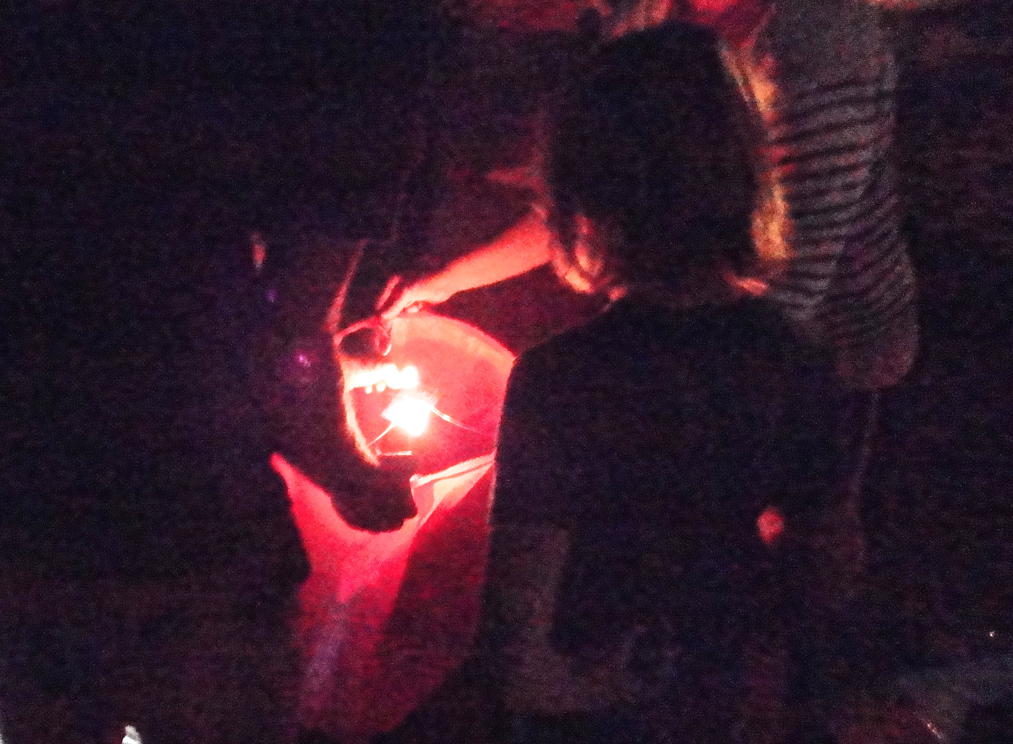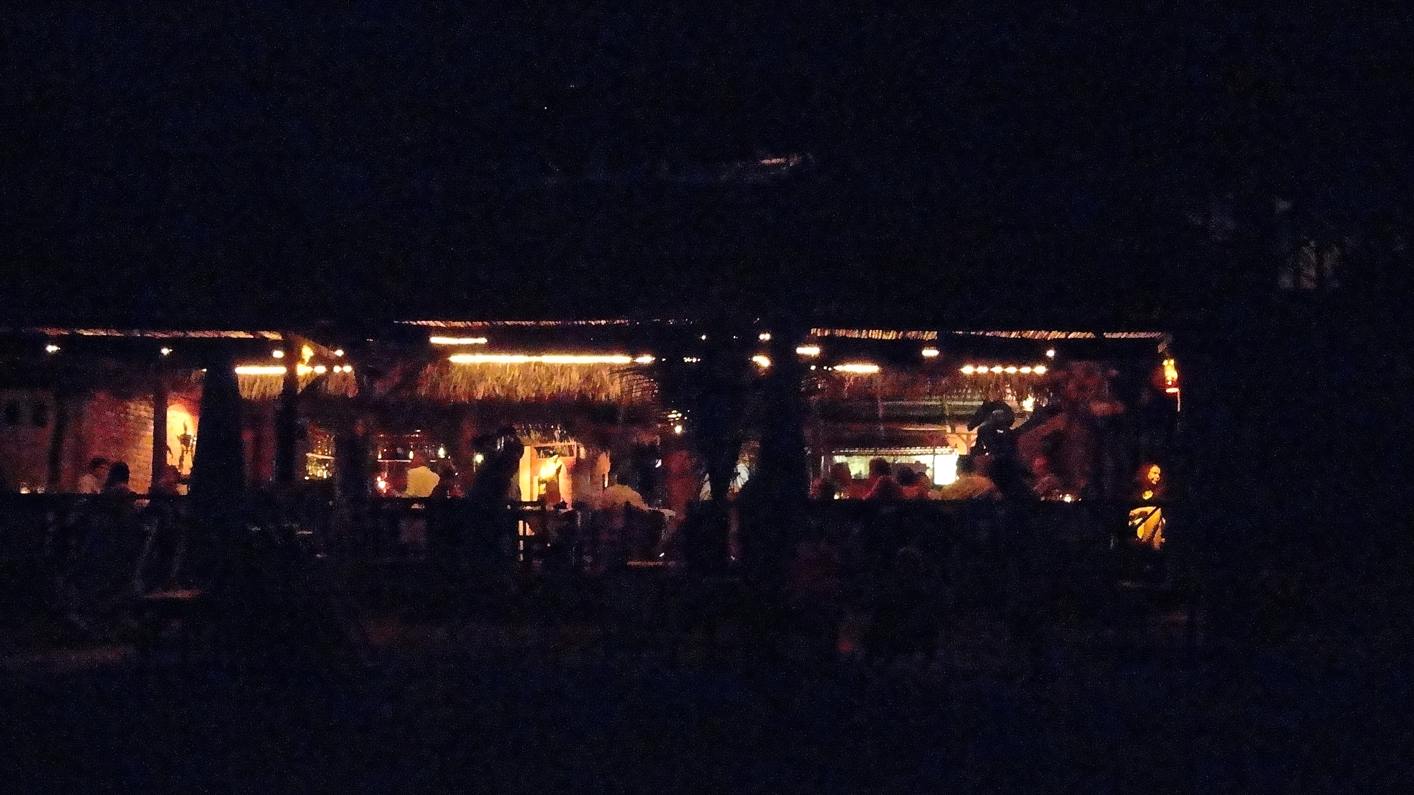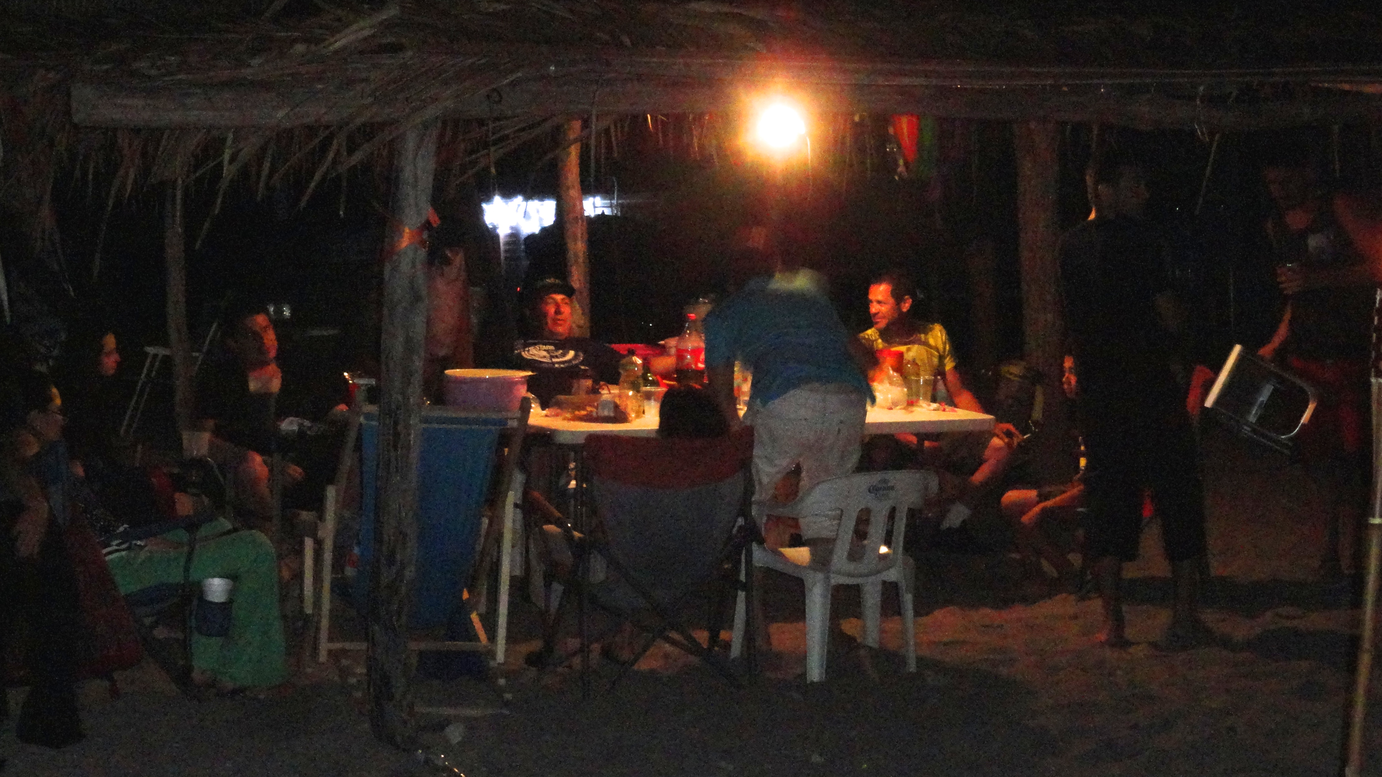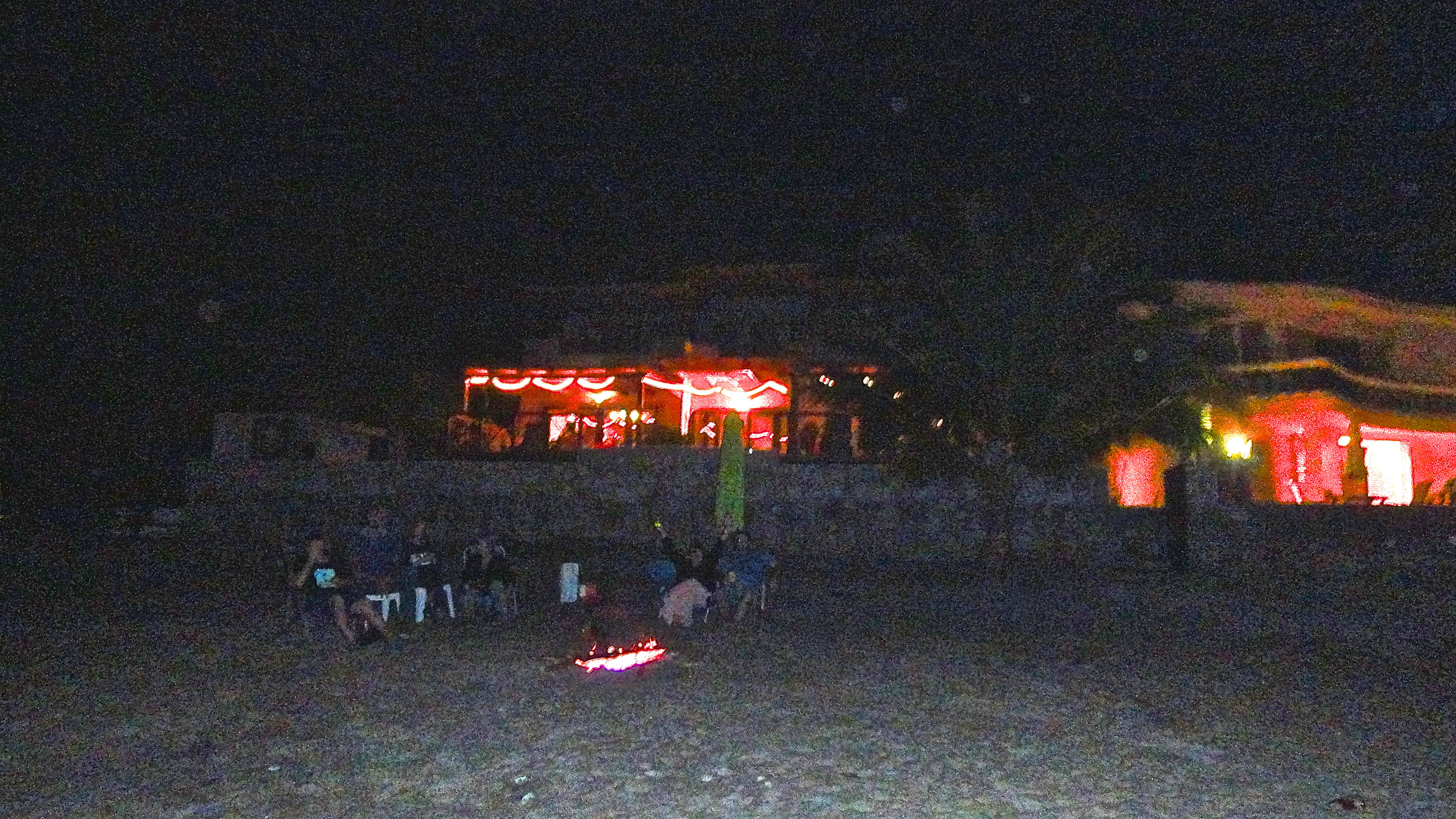 We walked up the beach a mile or two, spying on groups gathered to drink and talk in the New Year. Every group had a bonfire. Almost every group was setting off fireworks and/or globos. It was an acceptable sort of peeping-Tom adventure as I attempted to snap pictures in the darkness.