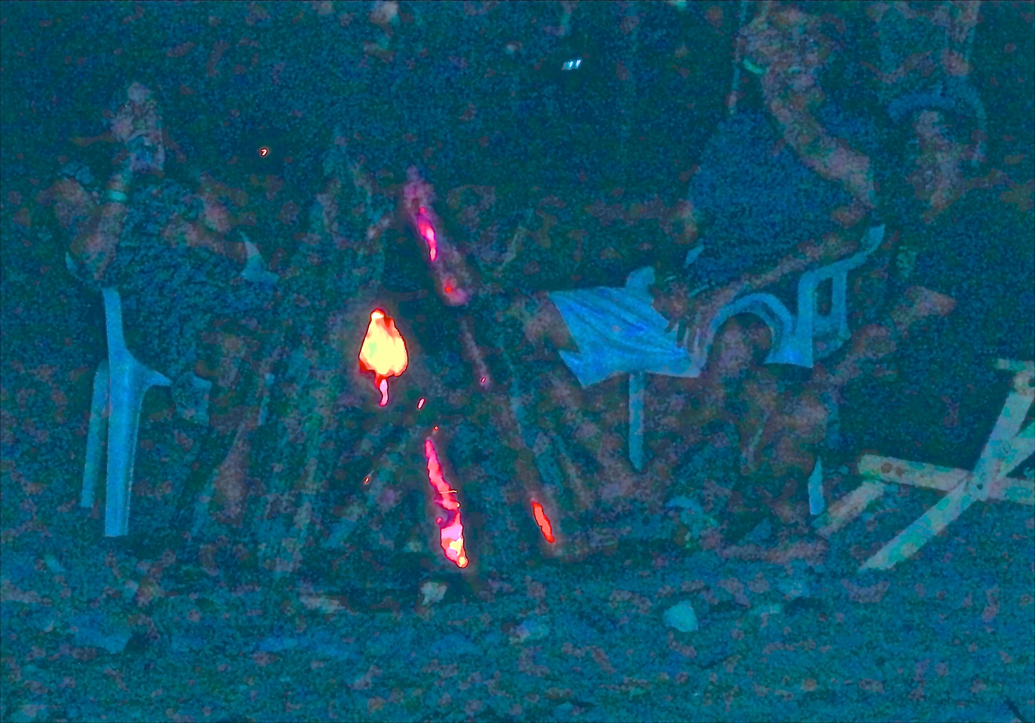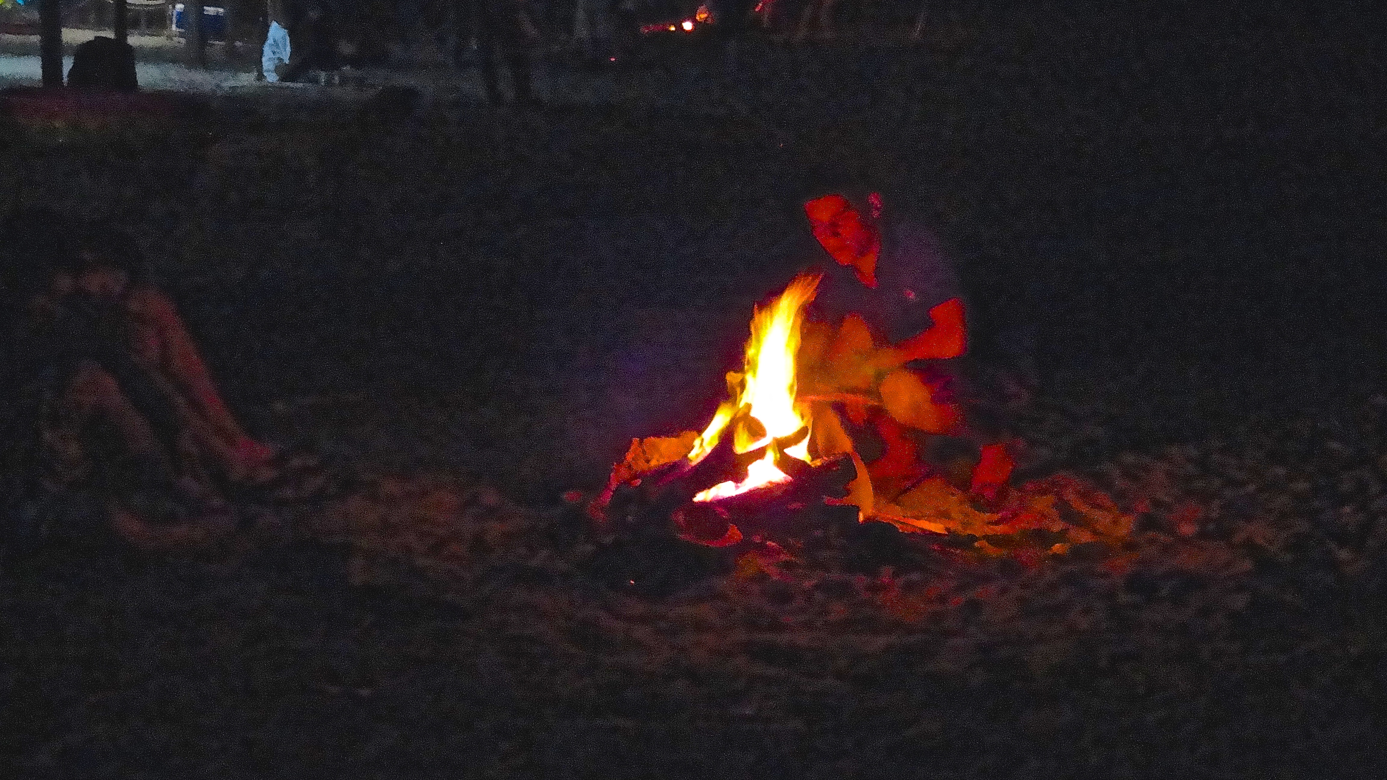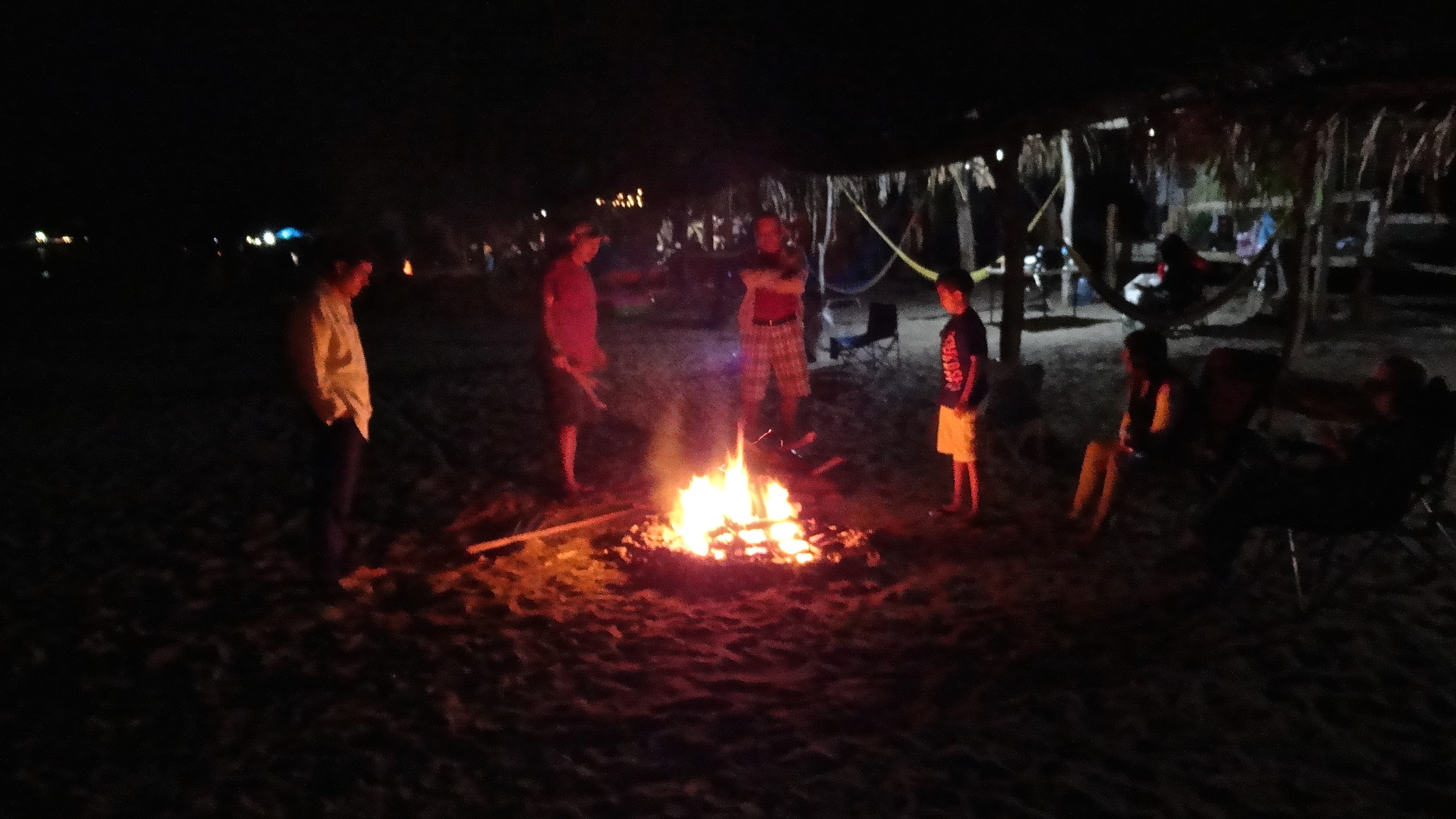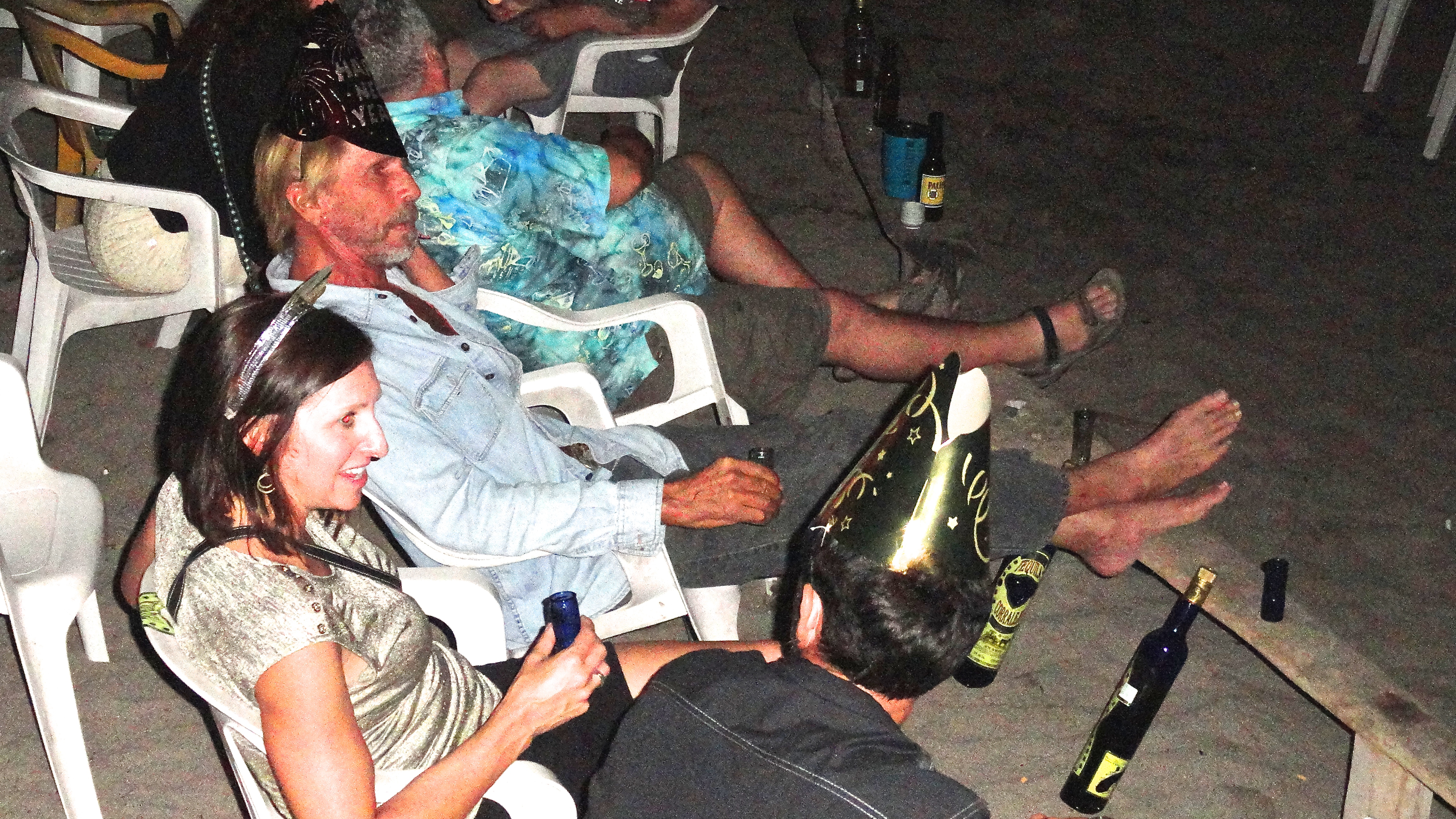 Parties raged up and down the beach, each with its own bonfire. Gathered to experience together this last special night of the old year were people in beachfront houses with their friends and family, citizens and snowbirds and tourists and vacationers grouped outside of restaurants, campers under beachfront palapas or grouped closer to their fires.