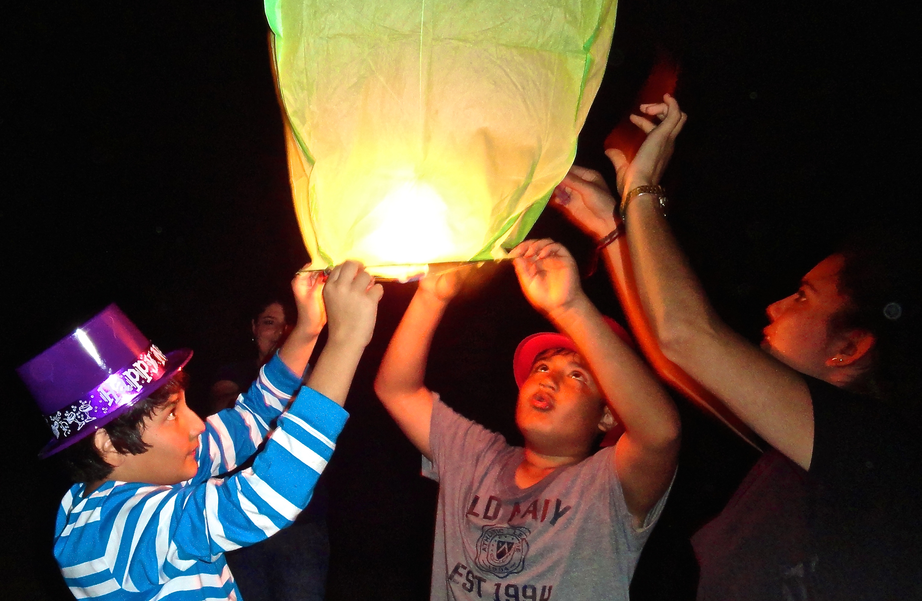 Last night on New Year’s Eve, there were hundreds of globos (small hot-air balloons) launched from the four-mile stretch of beach that extends from cliff face to cliff face along the oceanfront of La Manzanilla. Graceful paper forms with wire assemblies at the bottom that hold sterno cans or other purveyors of flame, they were lifted by the hot air currents growing within to sail up and gradually southwards—either out to sea or up and over the stone mountain that ends our beach and extends in a small archipelago offshore.