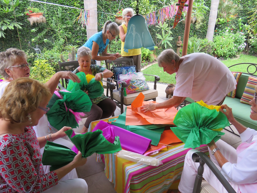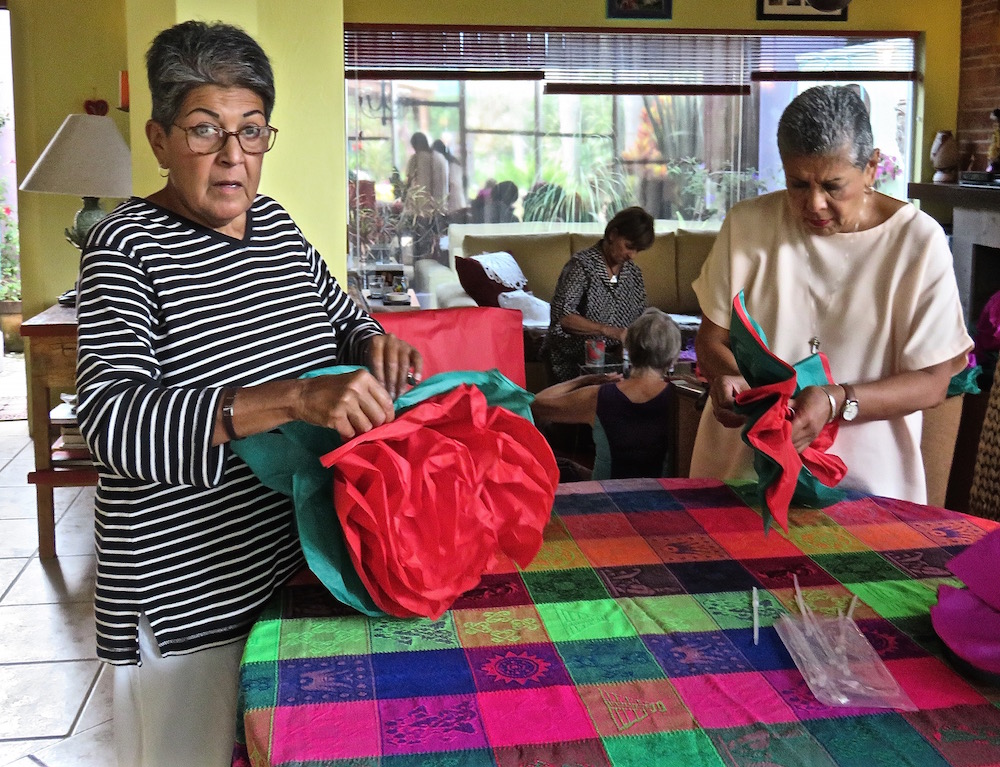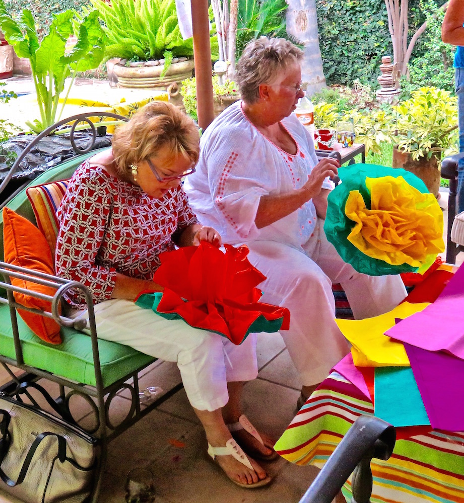 Every year, volunteers get together to make decorations for the Feria. This year they made 100 large paper flowers that will form part of the Feria decorations. For more information about the Feria, go here: http://www.mexicoartshow.com/