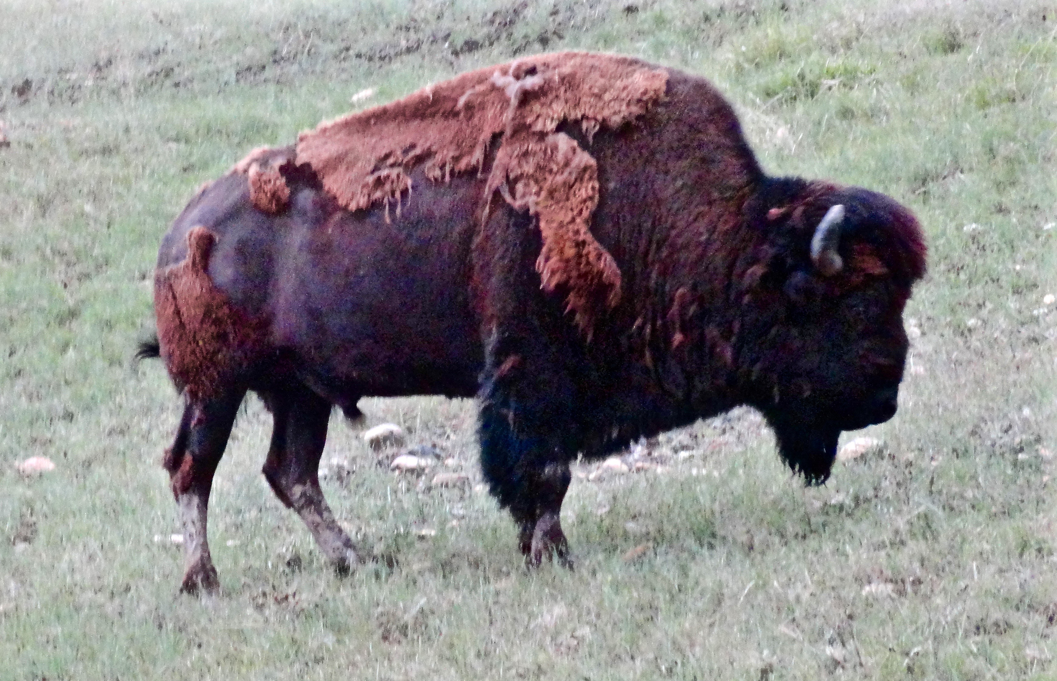 Does moulting count as off-season? Cee says so, so so do I. What other sentence have you ever seen with three so’s in a row? Sorry, Cee, for being a copy-cat., but there is no baby in mine! This buffalo snapped in Sheridan, Wyoming, that i just left four days ago.