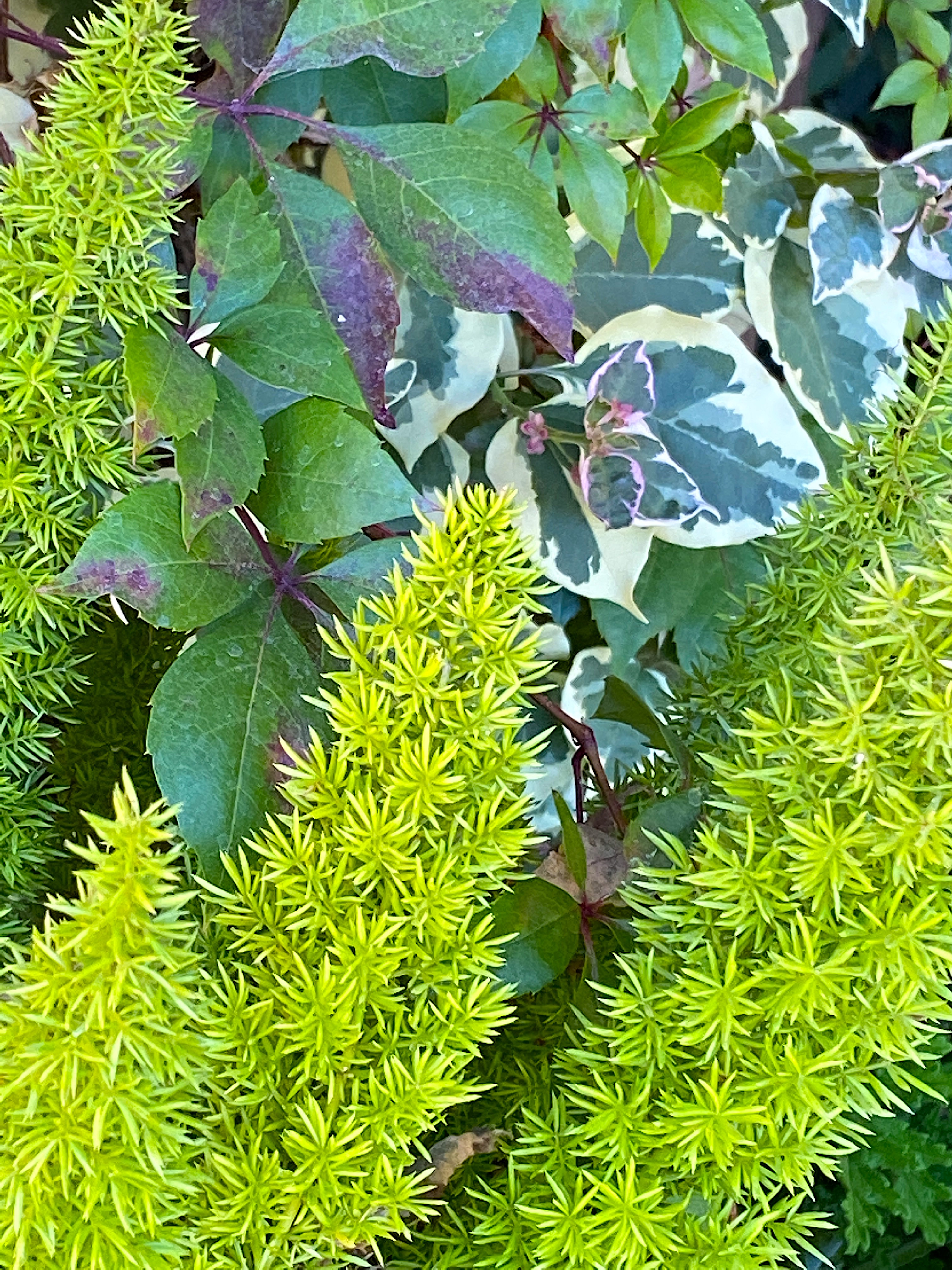Asparagus fern, Virginia Creeper and Variegated Bougainvillea