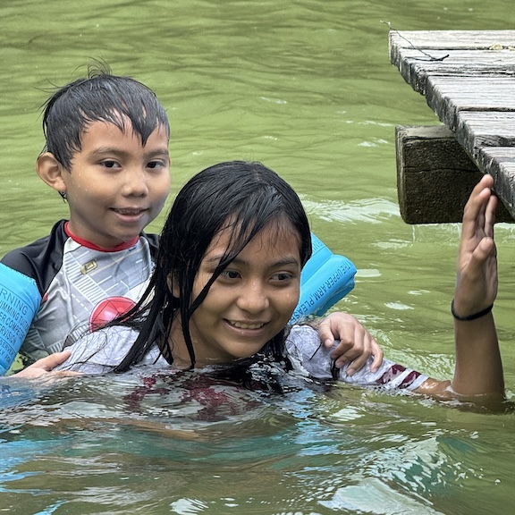IMG_3605 ← Previous Next → Buenavista, Lake Bacalar, brother and sister enjoying the water, as were we.