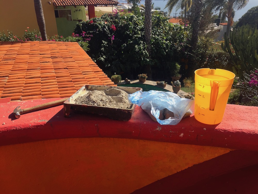 We assembled the concrete, the water and trowels,