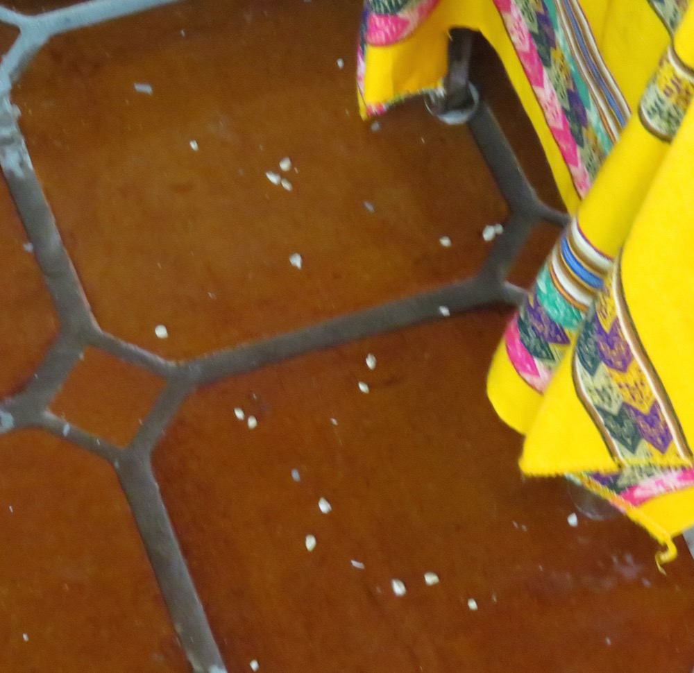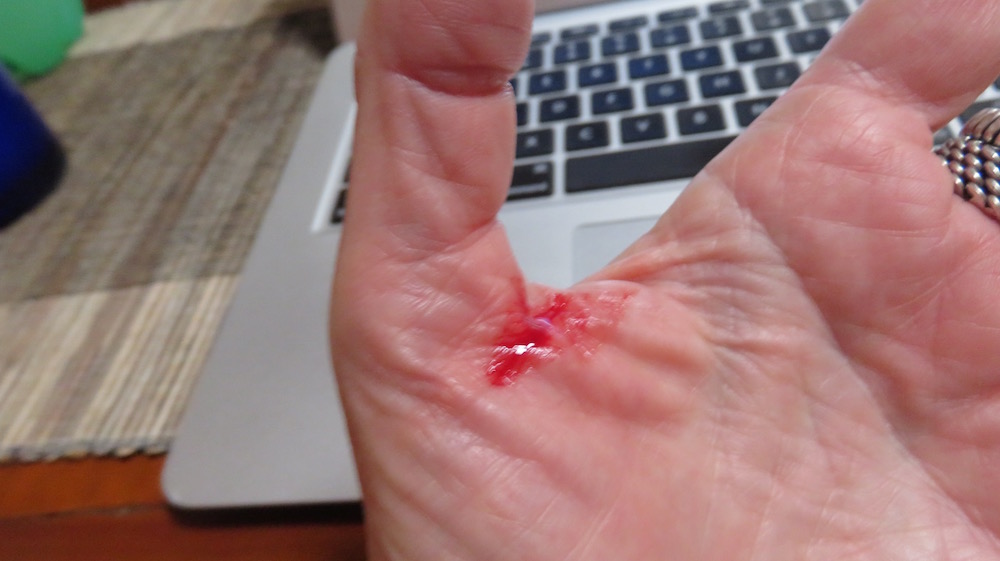 Yesterday I knocked a bottle of dark rose-colored nail polish off the counter of my master bedroom bathroom and it dropped and broke on the eggshell-colored ceramic tile of my bathroom, spraying across 8 feet of floor, over the new rug I had just bought in the states, and a bit up the wall. Rapidly drying pools of bright polish and splatters mixed in with shards of glass and tiny pieces of glass made passing through the bathroom to the tub nearly impossible! Damn! How to clean it up without walking through it and cutting my fingers to shreds? I ended up wadding Kleenex and toilet paper and picking up what shards were big enough to see, then used nail polish remover pads to tackle the polish, removing big gobs with Kleenex, then carefully scrubbing with the pads. When I ran out of pads, I put polish remover on wads of Kleenex, but it was a big job.