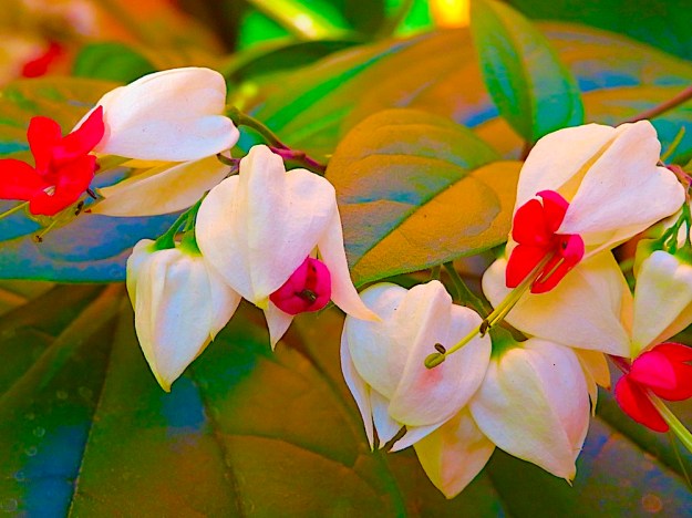 In Mexico, this is called an arete flower. In the States we called it a bleeding heart.