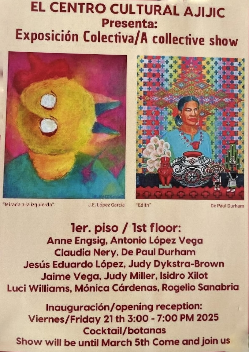 It joins lots of interesting work on the first floor. Upstairs on the second floor is a showing of Jesus Lopez Vega’s work. You’ve seen lots of his work adorning both the inside and outside of my house and don’t tell anyone, but yes…I did buy another of his paintings. It’s small. I’ll squeeze it in somewhere.
