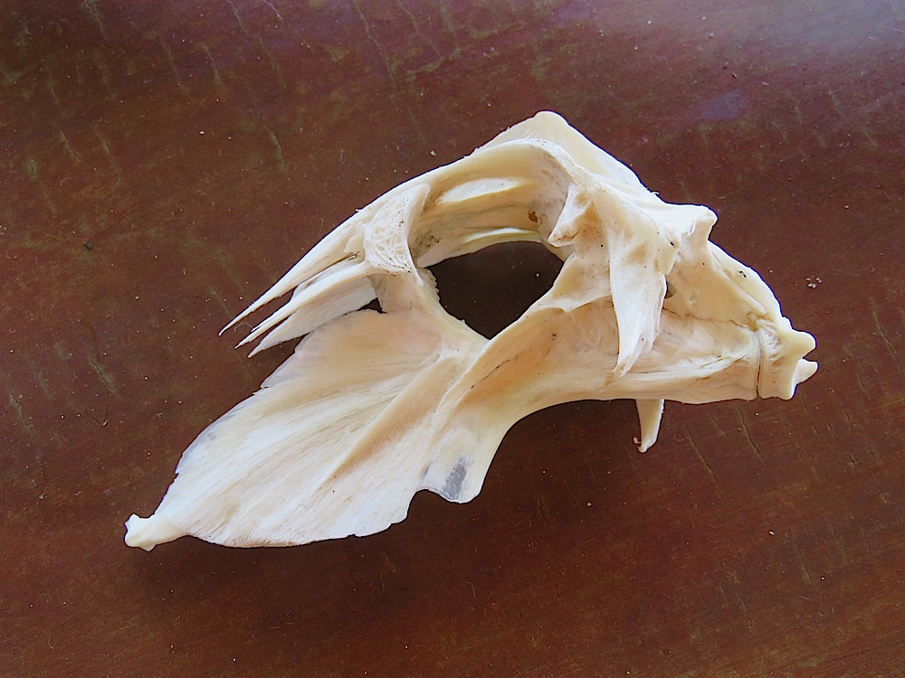 Beach finds create an exotic bloom. I believe they are the gills of a fish and ????? Perhaps a portion of dried kelp
