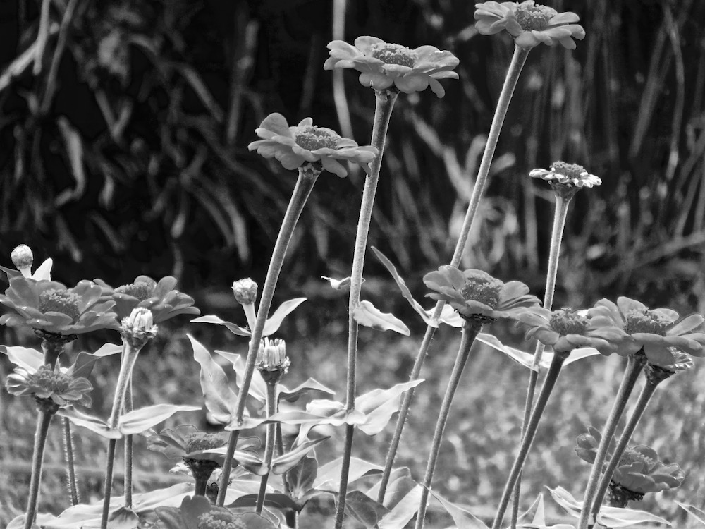 Okay, Zinnias again, but this time in black and white! I think this last clump of zinnias look like they have been captured in moonlight.
