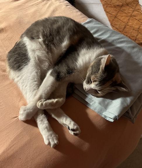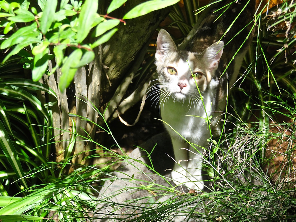 As a further note, the mother cat I named Kiddo disappeared again shortly after the kittens were weaned and I never saw her again. Perhaps the neighborhood jaguar (really) got her, but I’m hoping she ran away to rejoin the father of the kittens, who was the Russian Blue who visited them from the other side of the sliding glass door that day when the mother finally moved them back into the house.