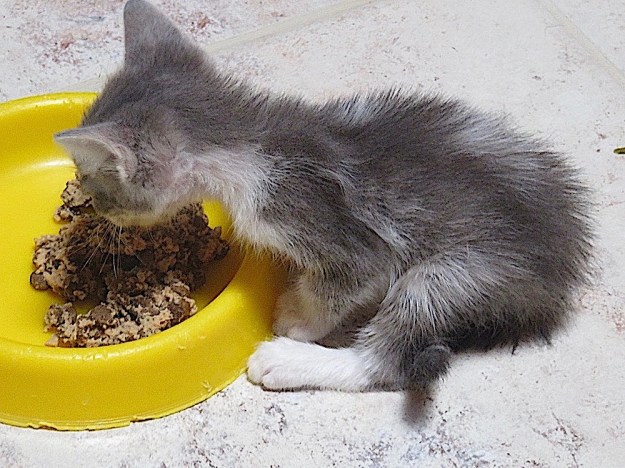 This is Ollie when he first showed up at my door with his three sisters. He was runt of the litter.