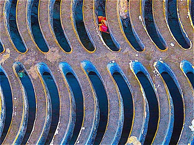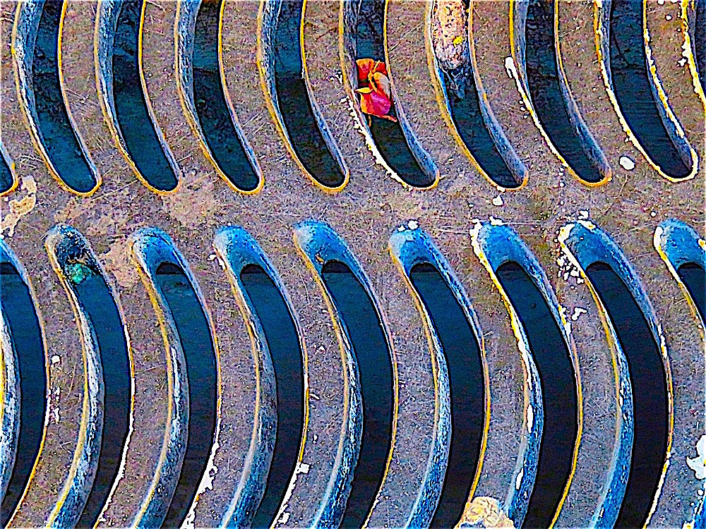 Call me an oddball for loving this photo of a blown-off flower head caught in a grating.