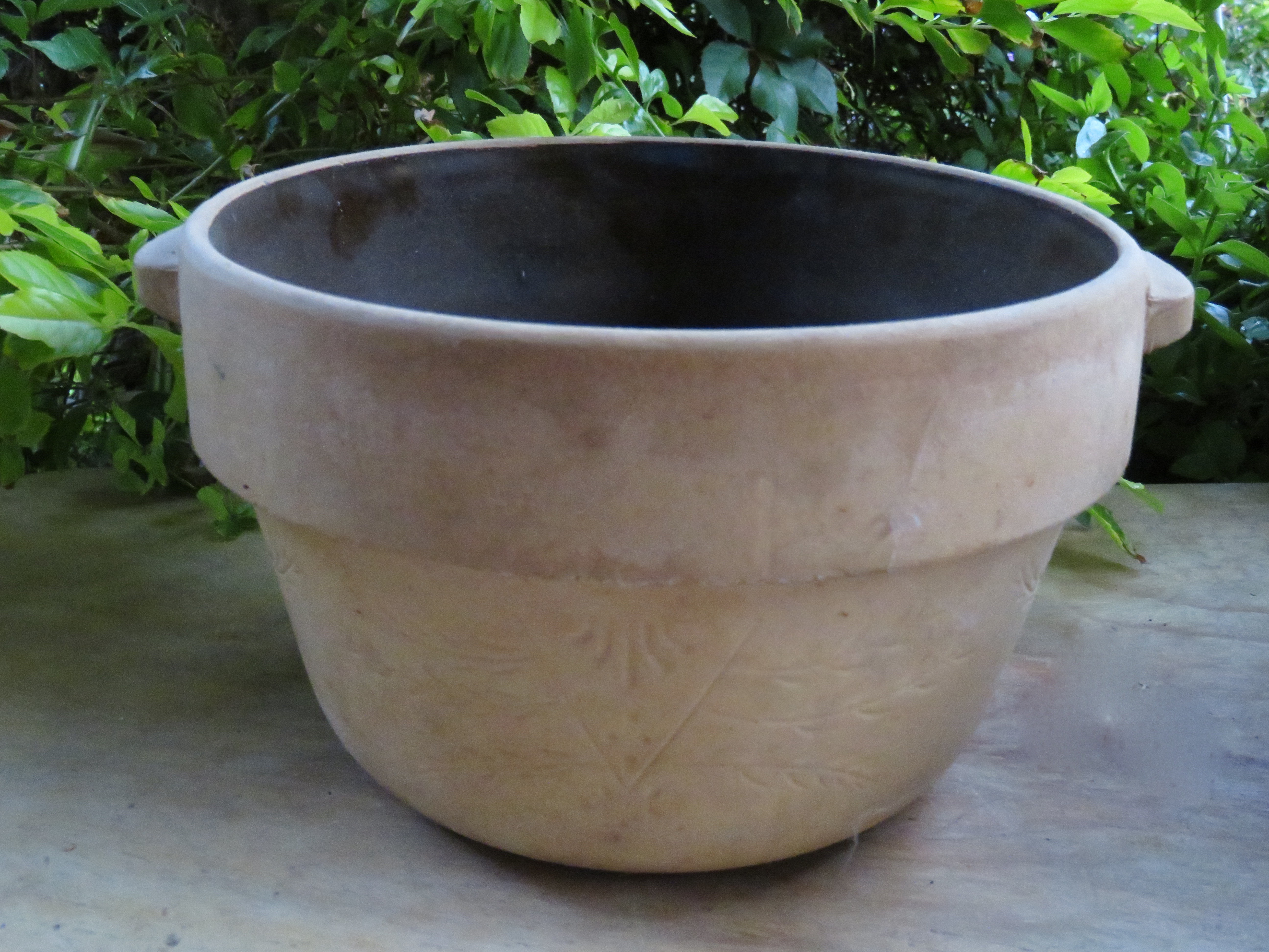 My kitchen looked much larger before I added the center island on wheels, but it has a lot more work and storage space now. I moved my grandmother and mother’s crocks down from where they usually reside on top of the cupboards just for this photo. We were asked to also photograph our favorite cup. This Talavera cup is my favorite, partially because it is the biggest cup in the cupboard, but I also love its design.