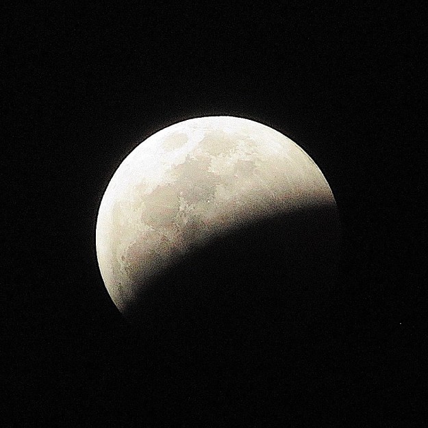 Today, Ana was going on at great length about the eclipse the night before.  I had missed it, going out to sit in the jacuzzi at 8 to find only mist and no moon.  There was intriguing music wafting up from the plaza of the pueblo far below.  The drum beats were of the native variety, and I was considering driving down to investigate when a phone call pulled me out of the jacuzzi and into the house.  Once dressed, however,  I found that the couch and a good book won out over a sleuthing trip to the village.   I’d check every 15 minutes or so to see if the moon was up yet and in eclipse, but in fact I awoke three and a half hours later to find the full moon glowing clearly above me.   I had missed the entire event.
