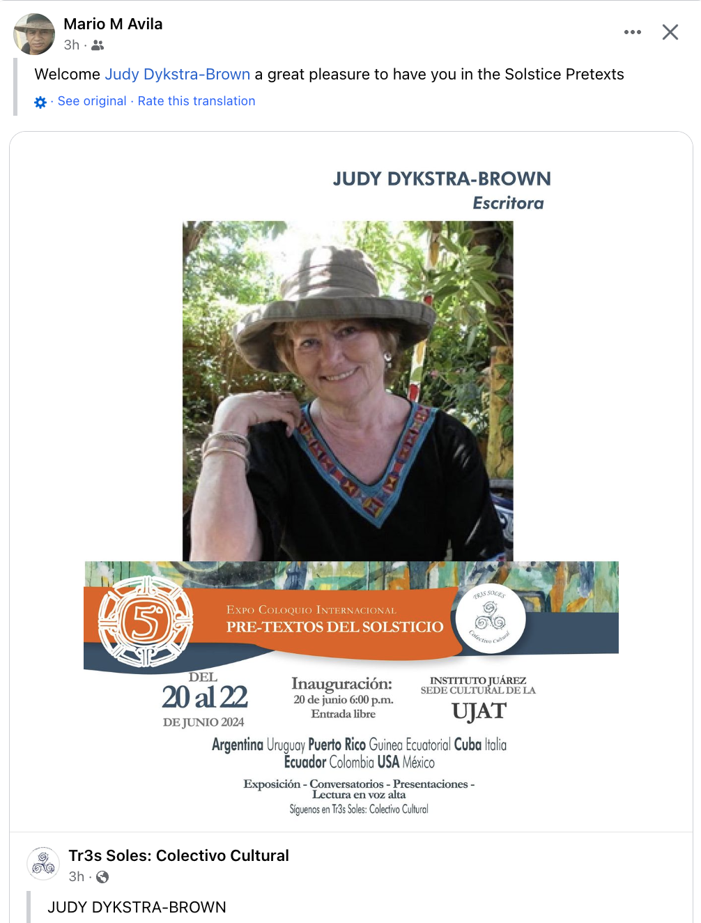 This is an international show, this year occurring in Tabasco, Mexico. Poets are asked to send two poems and the poems are given to artists who paint a canvas inspired by them. Very anxious to see what my poems yield. Links to the poems I submitted are below. A poem inspired by a painting is called an ekphrastic poem. I don’t know what the reverse is called!