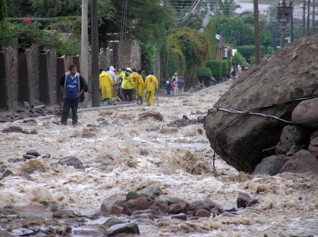 Gathering momentum, this raging river of water tore through two arroyos that run a block on either side of my house, ripping up trees in their paths, they ground up roots and bark into tangles of fiber which mixed with the mud. They shot through culverts, bursting them like boils, took cobblestones down with them, carved new super riverbeds out of former roads, exposed water pipes, ripped stone walls apart to join the mass of water and stone, left giant walls of piled boulders ten and fifteen feet high in their wake.