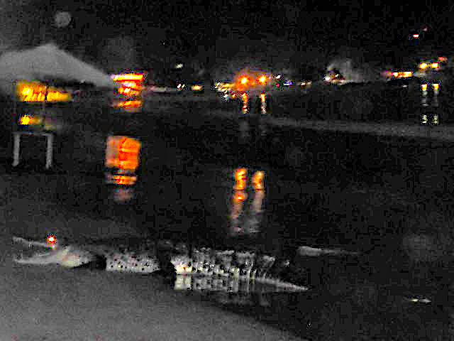 I guess it was the recent sighting of a croc on the beach at night that sent this little ditty rushing into my head this morning. I would love to have someone illustrate this.  Anyone want to try? Send a sketch of your vision of the croc in one of the given situations. You can either email it to me or put it on your blog and send me a link!