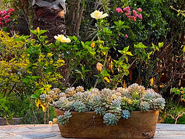 in the former birdbath now filled