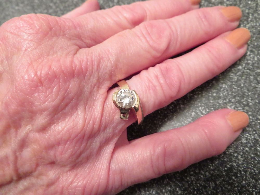 So, we’ve finally come to the bottom of the stocking, but anyone who has plunged into the depths of a Christmas stocking knows there is always something left in the stocking’s toe. In this case it is a small but substantial box wrapped in rich gold paper with a shiny silver cord. Inside is a slide with a large diamond set in gold. Although I know that gold and diamonds are no longer my sister’s “style,” this one is a wonderful modern design with an emerald-cut stone set in a flat gold setting. It is this gift that I’ve chosen to show her worth to me and for that, nothing but the best will do!