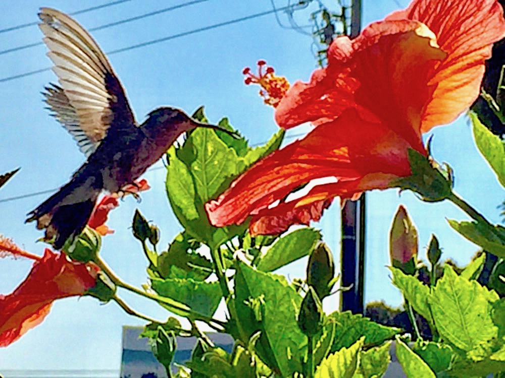 The deck of my next door neighbors is a favorite hangout for hummingbirds. Near sunset is an especially busy time. These photos were taken on Thanksgiving when three lucky guests were invited to partake in David and Sergio’s feast. More photos of that event to follow.