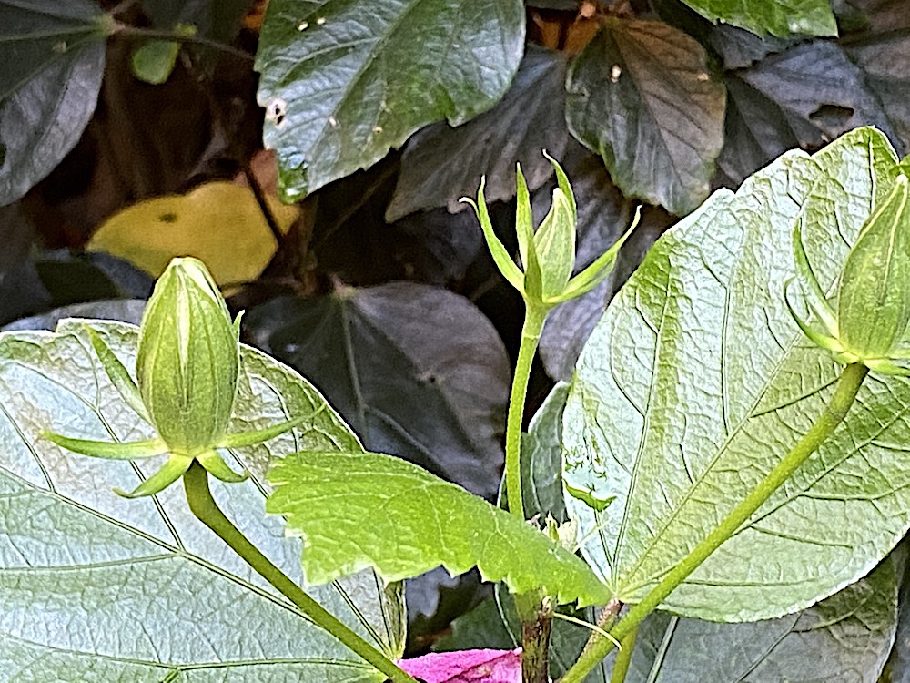 Not sure whether this hibiscus is opening or closed for good, but looks like a few new generations are ready to spring up.