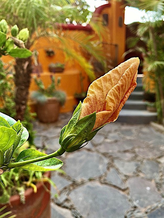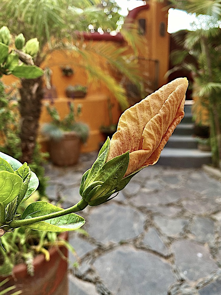 Budding hibiscus. This small bud will turn into a huge orange bloom like the one I showed a few days ago.