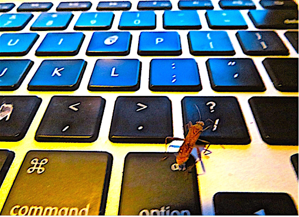 Obviously, this insect crossing my keyboard is confused and wondering where to go. Note the key he has just stepped up on.