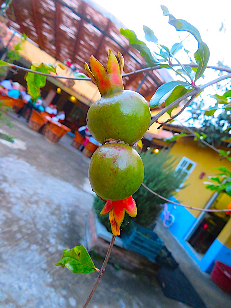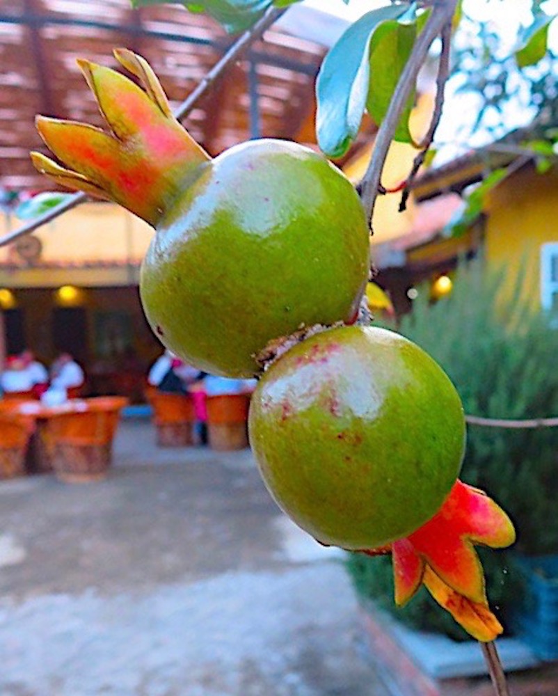 I found a number of conjoined pomegranates on this tree at Viva Mexico. This is the first time I’ve seen this happen.