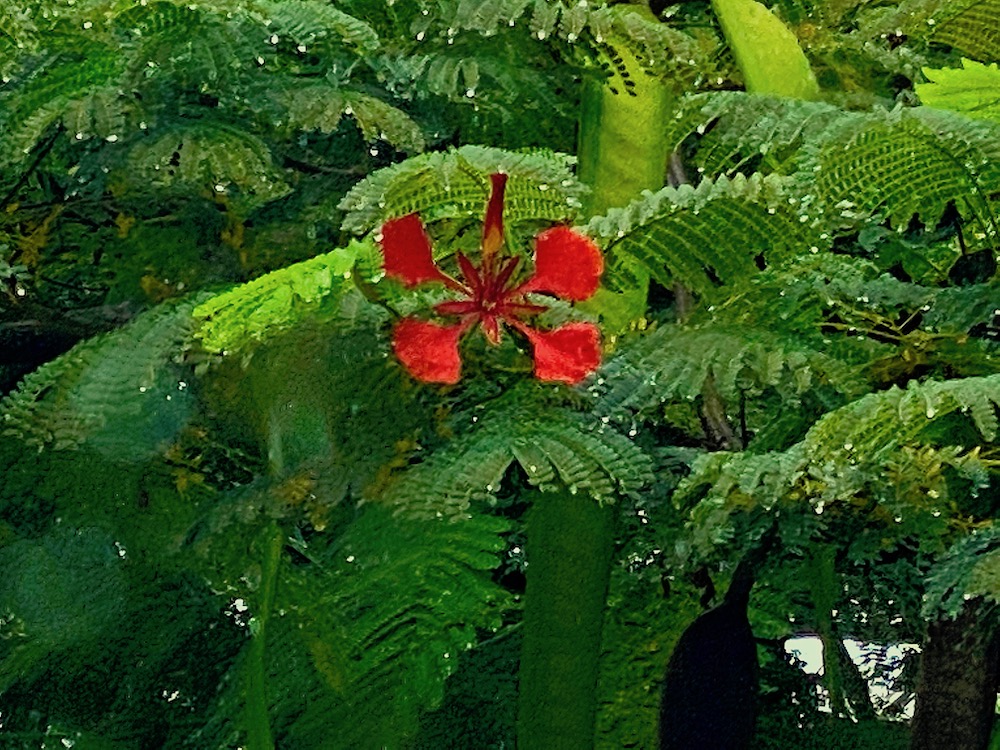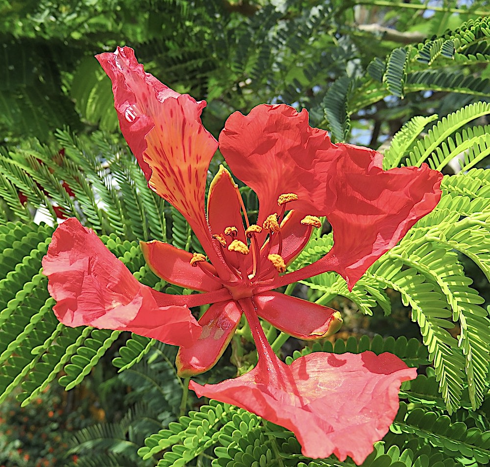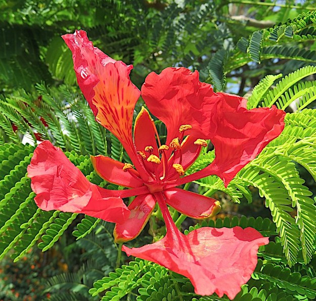 Actually, the past love I’m fighting sad feelings about today is the 22 year old Royal Poinciana tree that they are cutting down today. It had root rot and was in danger of falling so it had to be done. So, unbeknownst to me, I gave myself good advice in writing this poem which started out to be about love of another variety. Here is the tree in all its former glory:
