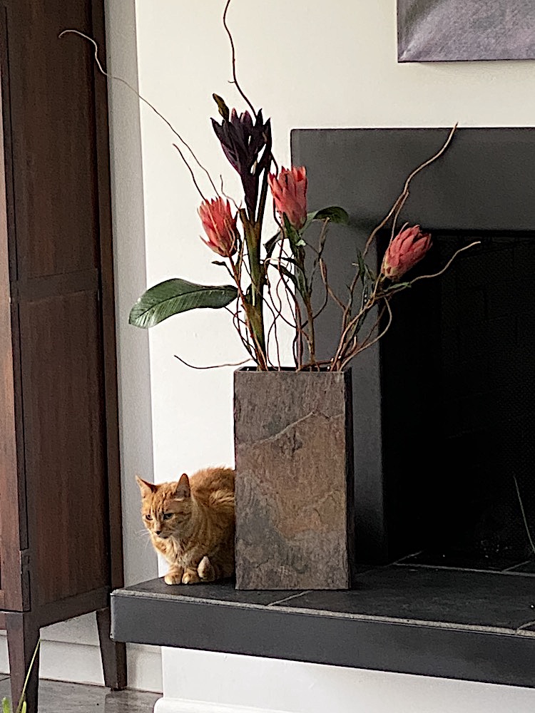 I spent all day trying to fight off a migraine. Soon after I woke up I lost half my vision—could only seen the right side of my head by turning my head sideways. I took a couple of caffeine pills, hoping that it was the beginning of a migraine—fearing the alternative more. My vision eventually came back but a nagging little headache persisted so I took more caffeine, tried to eat around 3 but had terrible indigestion and more of a headache. Finally, I took an Extra-Strength Tylenol along with a Coke, which I knew would give me arm and/or leg cramps, but it was preferable to a full-strength migraine. Went down to the hammock with an audible book so I could close my eyes, Morrie jumped up on my lap and Diego hung his head over the side of the hammock seeking my other hand. I pulled my cowl neck over my head to avoid their stinky bodies and breaths (bath-time is in order) and finally, blessedly, fell asleep. Aroused by a phone call from a good friend, after hanging up, I was seized by a massive foot cramp, got up and stamped it out and came up to the house where the pups and kitties were glad to finally have their meal a few hours late. Not the best day in the world but it brings me to the reason for telling you my woes, other than your sympathy—that being the reason why I haven’t yet written and published my poem for the day. So, finally, at 8 in the evening, here it is.
