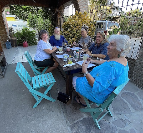 It has been a packed two days since we arrived in La Manzanilla around 5 PM yesterday. Music at Cocuno Bar and Restaurant on the beach, a rodeo parade, then the next day the tiangus (weekly outdoor market), a ride to Chantli Mar up the coast, back to the Crocodile bar for music and breakfast, a visit to the Manzanilla Gallery where I was able to find the talavera pottery I didn’t find at the tianguis and also so see my own work they were displaying, then an art opening at Gallery 10 and dinner. I saw dozens of people I hadn’t seen in a year. Tomorrow, more thrills.