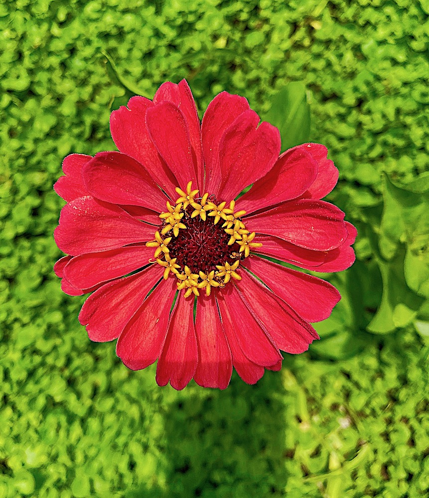 This lovely and bushy zinnia decided to join my garden-in-progress in my adjoining lot. Who says uninvited aliens aren’t welcome???? Click to enlarge photos.
