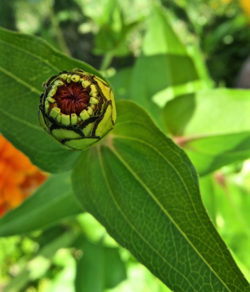 I sprinkled seed from an earlier zinnia plant over this plot of dirt left after I dug up a big cactus to transplant. My plans were to put a fish pond here, but I can’t bear to dig up the zinnias which have been blooming almost constantly since. You’ve seen them at other stages, but this is what they look like now. They are loving the rainy season!