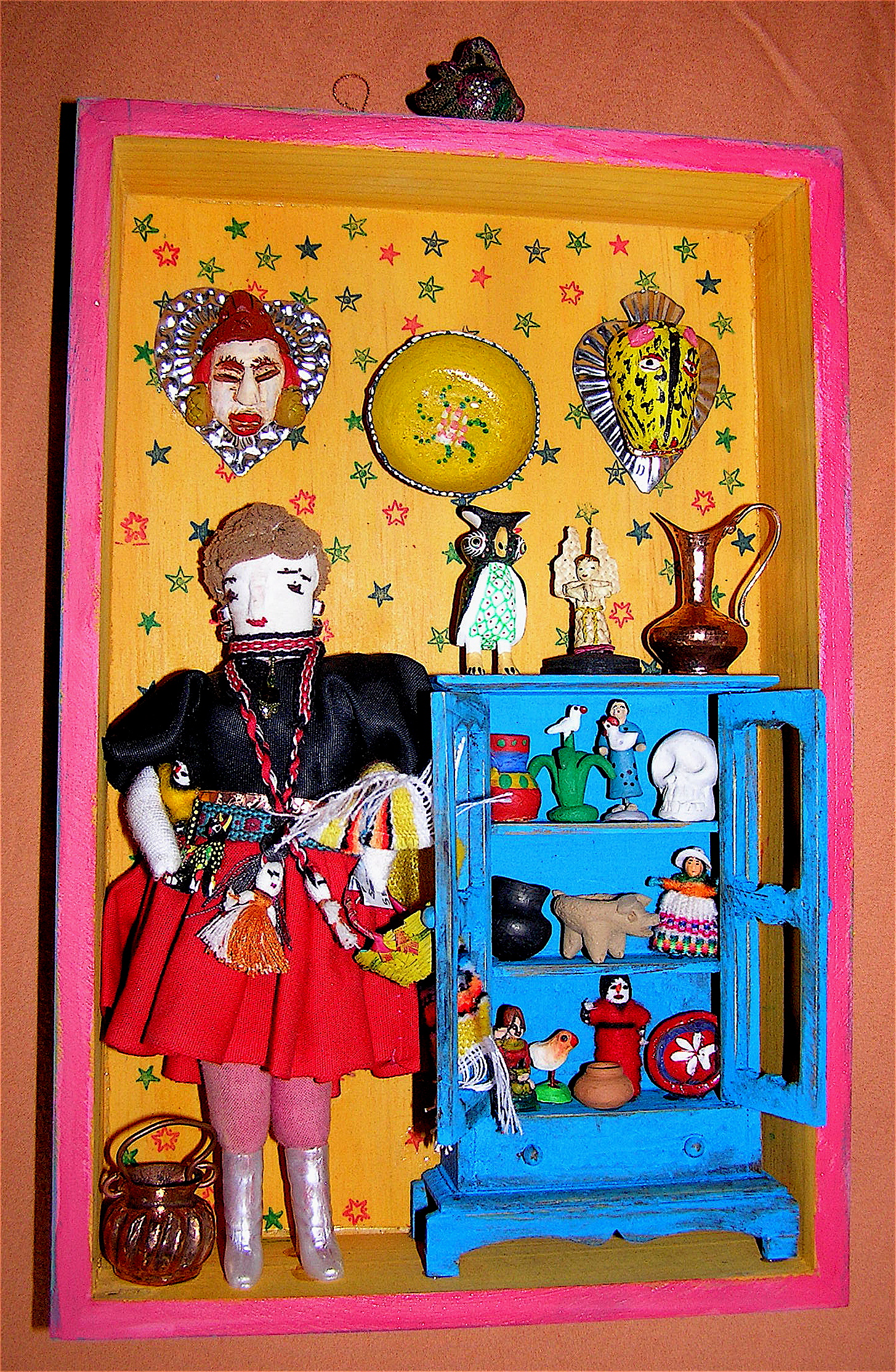 A year and a few months later, we were married and moved to northern California where the living was cheaper and where I intended to get a teaching job to augment his early retirement (from teaching) income so he could finally become the full time artist he’d always wanted to be. Prior to moving northwards and actually prior to our marriage, when I experienced writer’s block, the man whose poetry workshop we both attended had suggested that my problem was that I “knew” too much about writing. (I had been teaching literature and writing for 10 years prior to moving to CA to write myself.) He said the cure would be to try an artistic discipline other than writing that I knew nothing about–in my case, art. But I couldn’t draw or paint, I protested. So, he suggested I go to the dime store and buy a bunch of “stuff” and just play around with collage.
