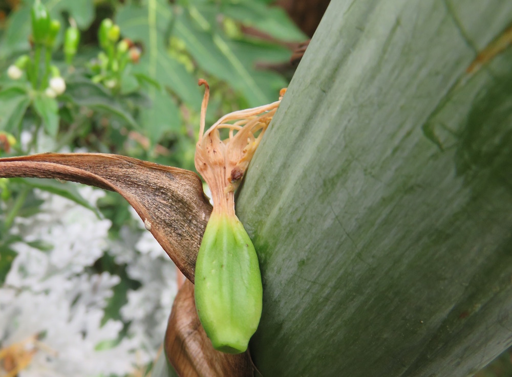 If I make a lunch for workers, they often nab a few chiles off this bush to spice up my tame gringa food. Perhaps they, too, will be nabbed–by this busy spider.