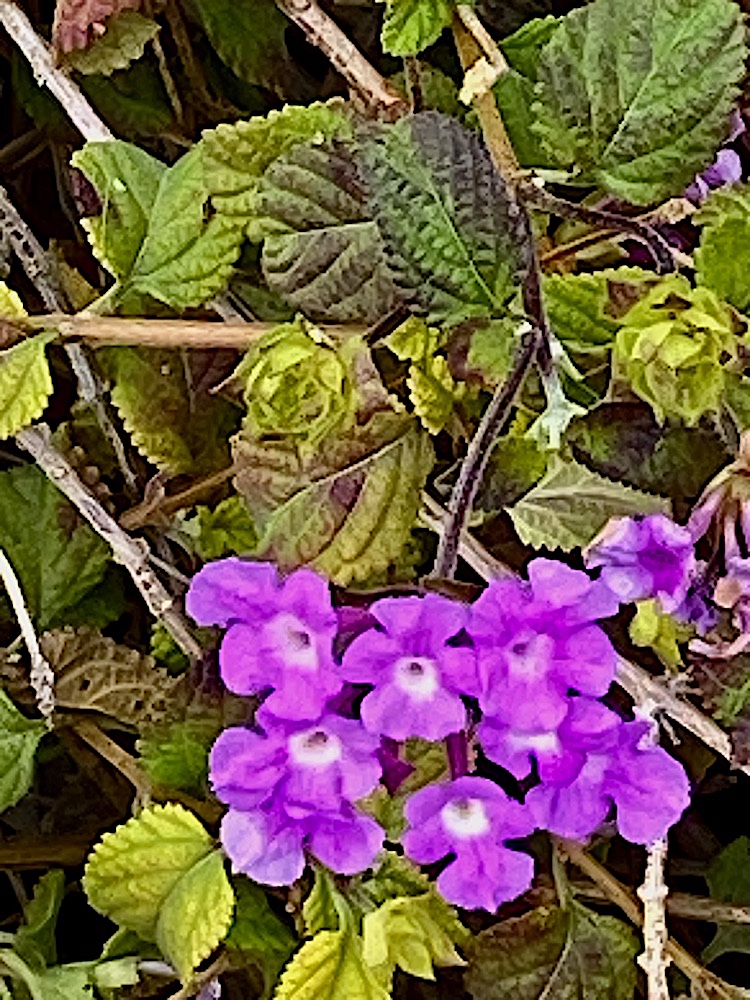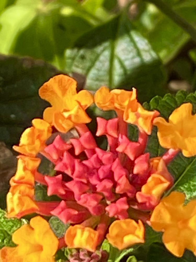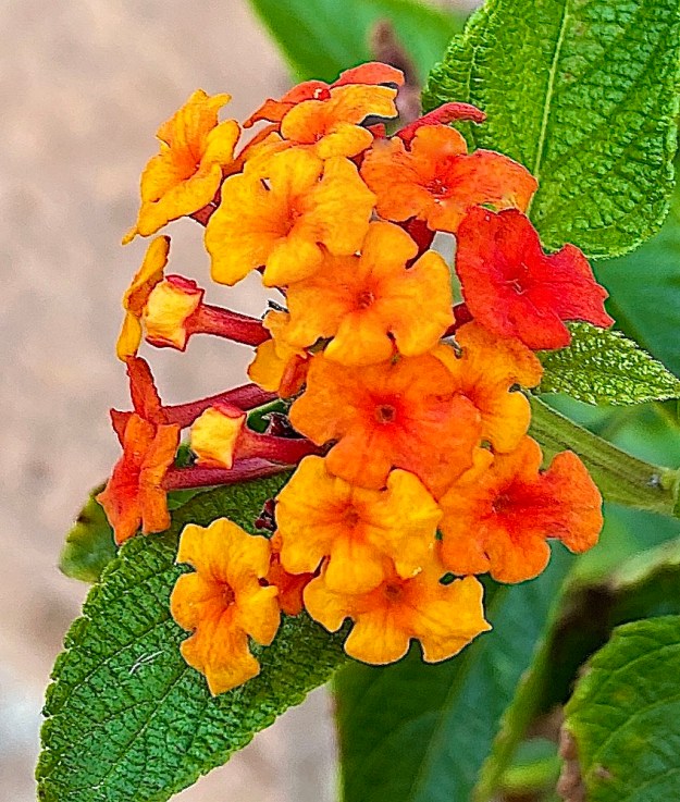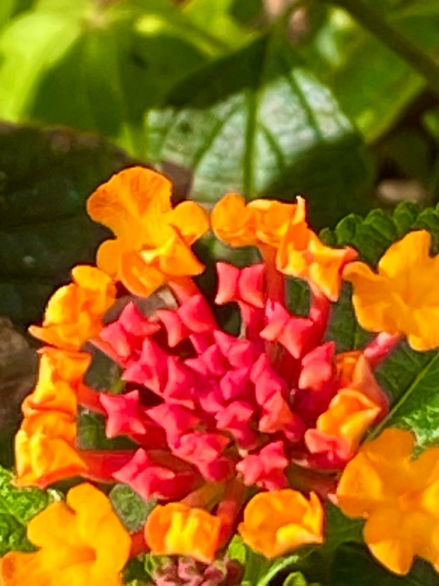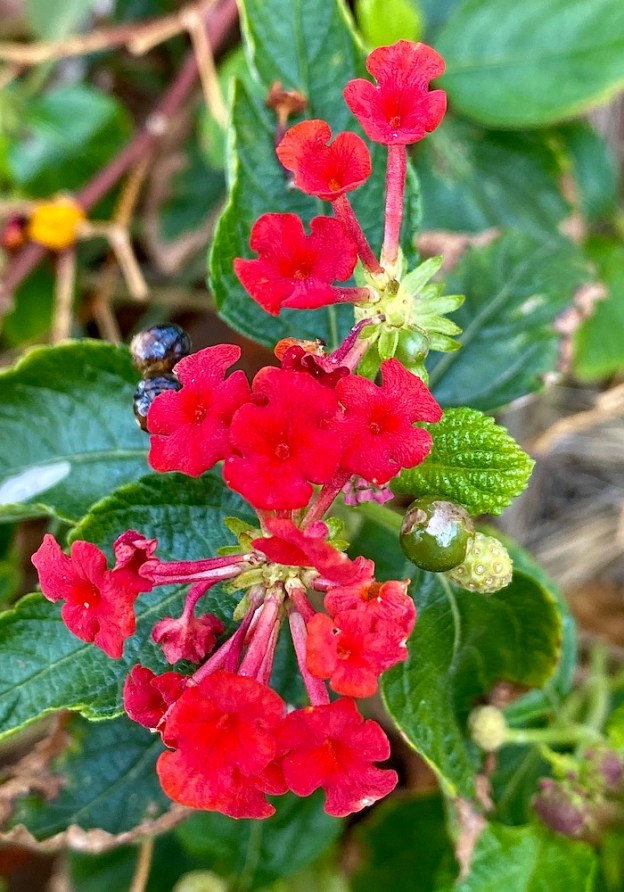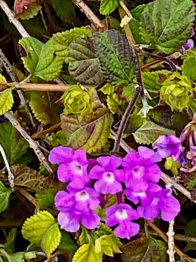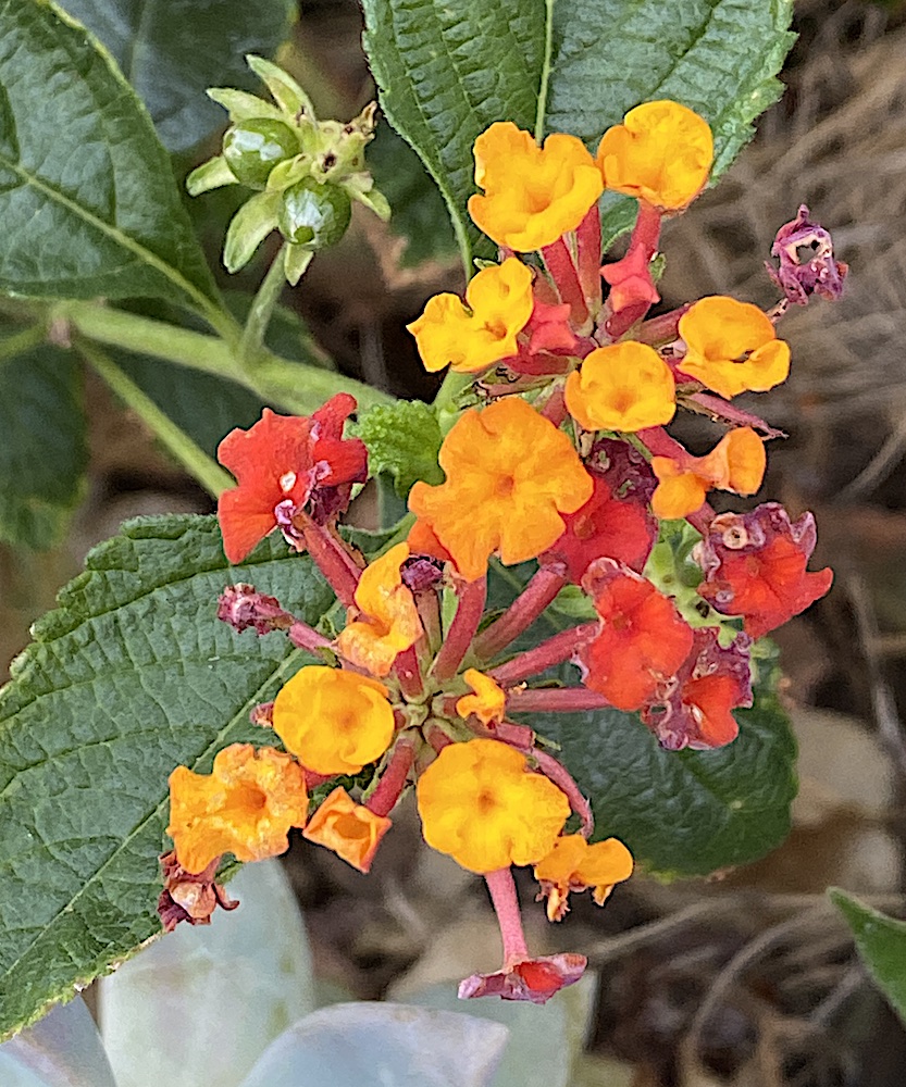 It has been a long time since I included photos of Lantana in my FOTD. I removed all of the bushes when I noticed the dogs were “grazing” on them as I’d discovered they were poisonous to dogs. I did plant one outside the wall in front of my huse and just noticed it when I was checking out the growth there. They grow to tree size in Mexico, sometimes, but so far this plant has curbed its growth. So glad to see one still on my property. They are so hearty and in California I had lots of them in the lower garden as they were deer resistant and also most insects.