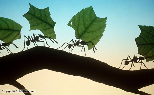 Ant generals three or four times larger than the rest patrolled the lines, getting smaller ants out of difficulties, lifting caught flower barrels over higher zigs of stone or helping to disentangle plant collisions. One small ant struggled to try to extricate its load from a depression. It was carrying a piece of succulent shaped like a small pompon on a green stem, the pompon consisting of a dozen tiny green balls. Top-heavy, it kept landing in bowled depressions in the fieldstone and getting stuck. Time after time, other ants would come to help. They tugged and pulled and pushed. Again and again the small ant would get it balanced and start off again to land in yet another depression. Finally, he was well on his way over a particularly flat few inches of stone when the wind came up and lifted the load from his jaws, blowing it a good six inches out of the way. The same was true of an entire leaf being carried by one of the general ants, but in this case, the ant did not let go of his load and instead was blown with the leaf across the patio. The ants both abandoned their Herculean tasks, scurrying back in the opposite direction, fate having relieved them of annoying tasks their ant natures would not allow them to abandon.