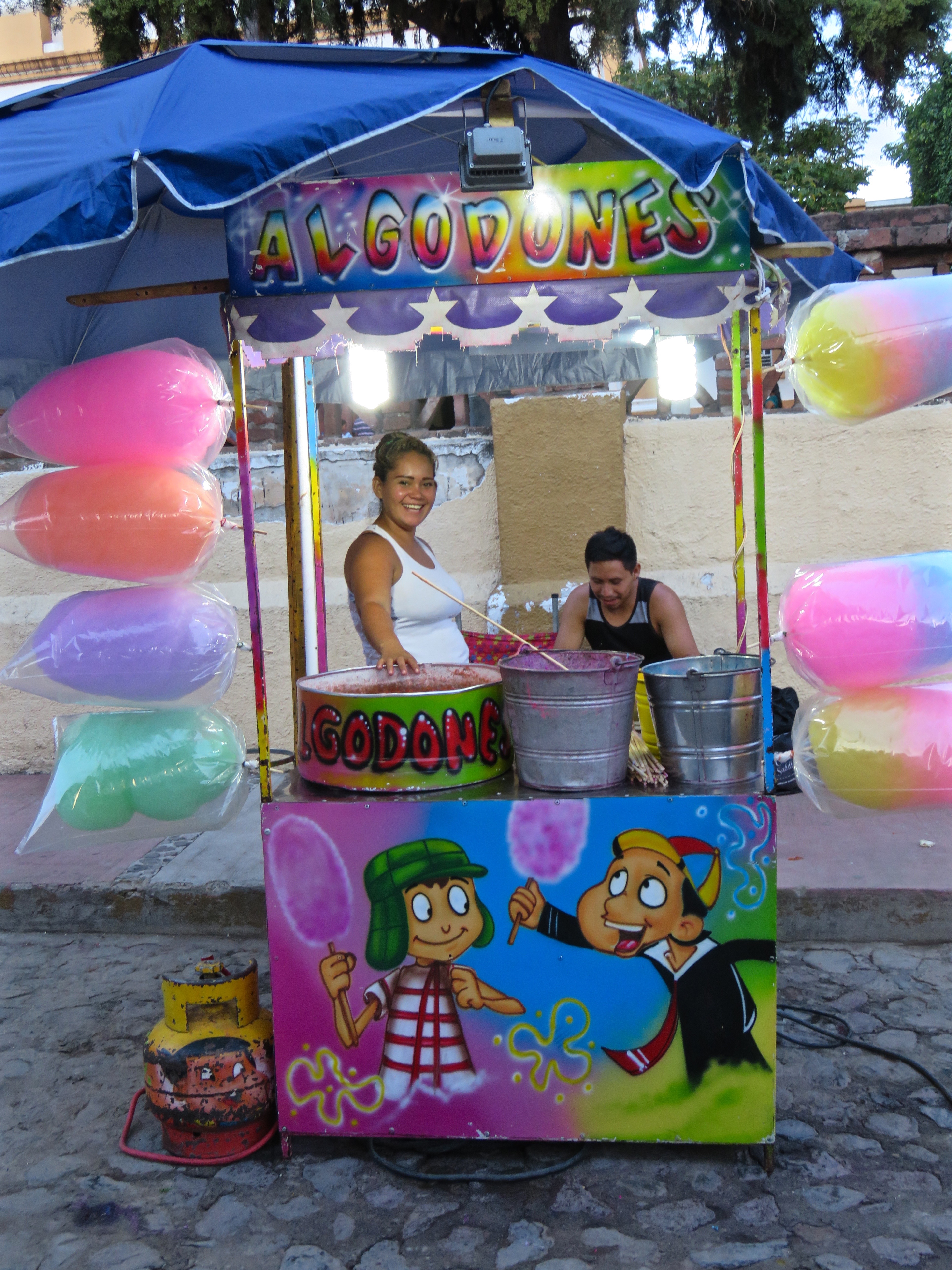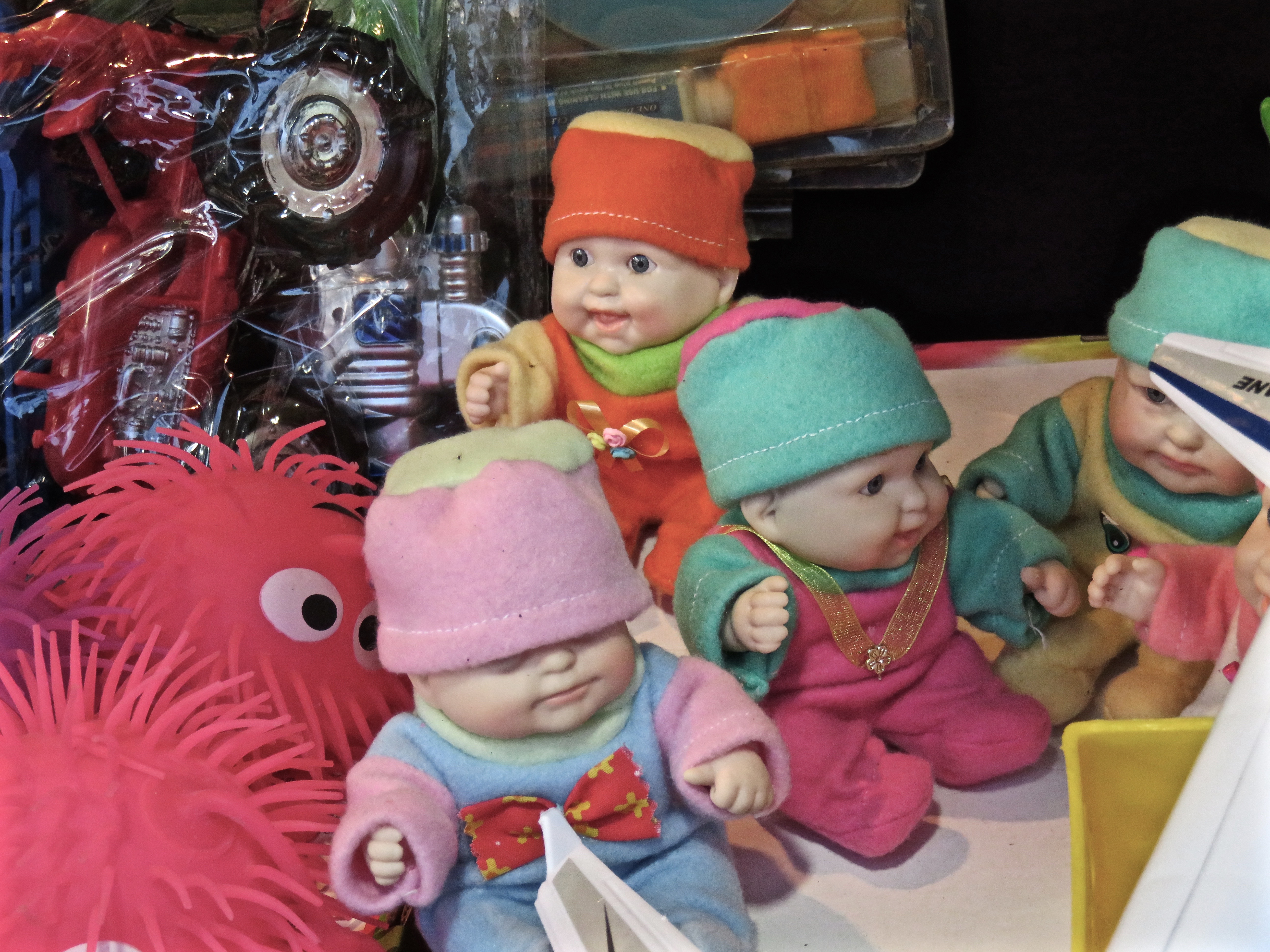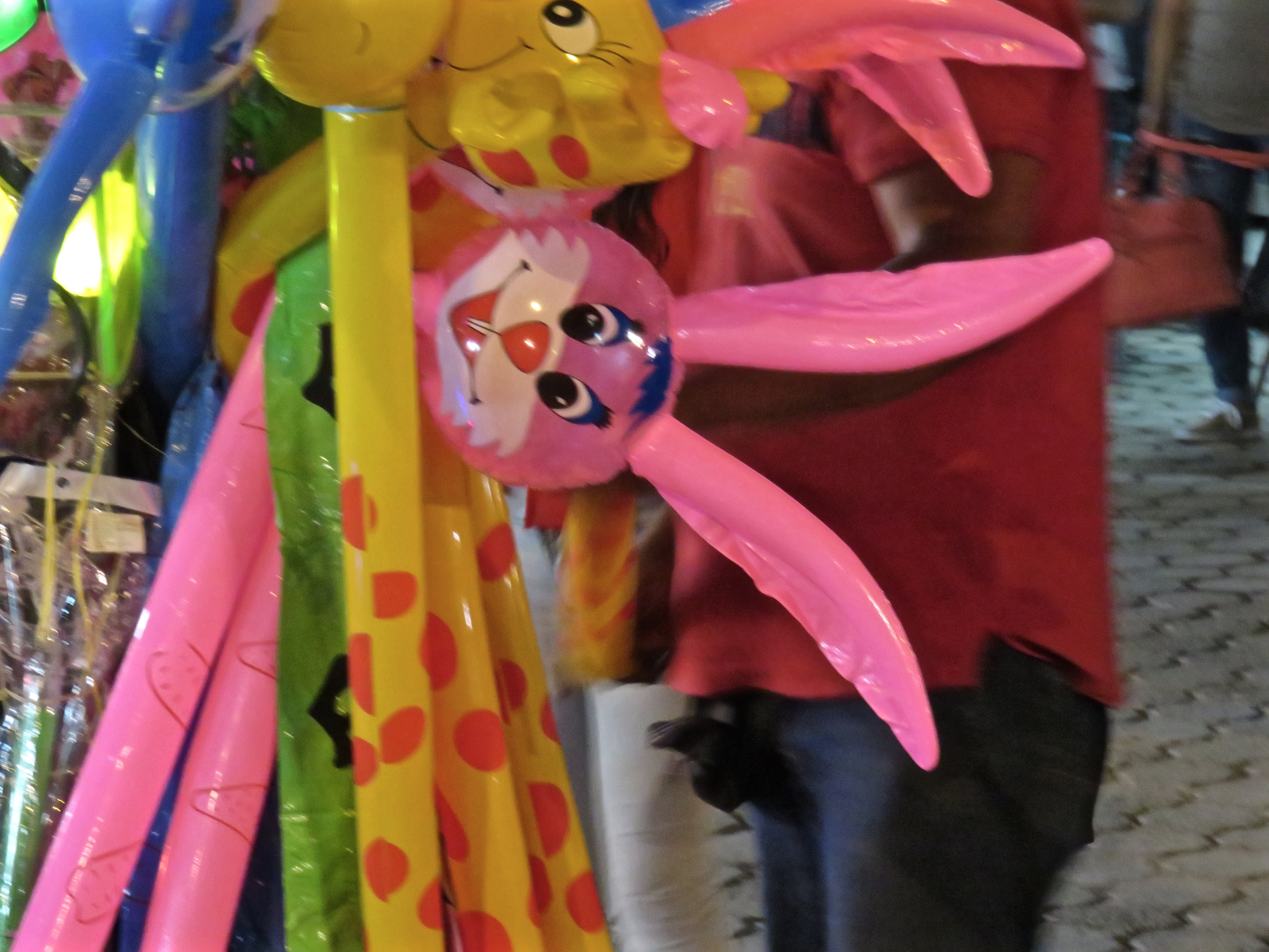 One sinister detail of the otherwise image-filled night was the small girl–perhaps 10 or 11 years old, who peered over my shoulder, coming very close as I photographed the cotton-candy spinner.  “She must be interested in photography,” my friend told me, “because she was looking so closely at your camera.”  As we walked away, she followed us, and asked a question of me that neither of us could understand.  She was not asking for money.  We asked again what she wanted, but again could not understand what she said.  As we walked away she followed–down row after row of booths offering toys, cookware, cosmetics, religious statues and games and eatables of many varieties.  Finally, it grew sinister.  We would spin and face her and walk in the opposite direction and she would spin and walk after us.  I finally refused to walk to the end of any rows, preferring to stay in more frequented areas.  I kept hands in pockets over my money and camera.