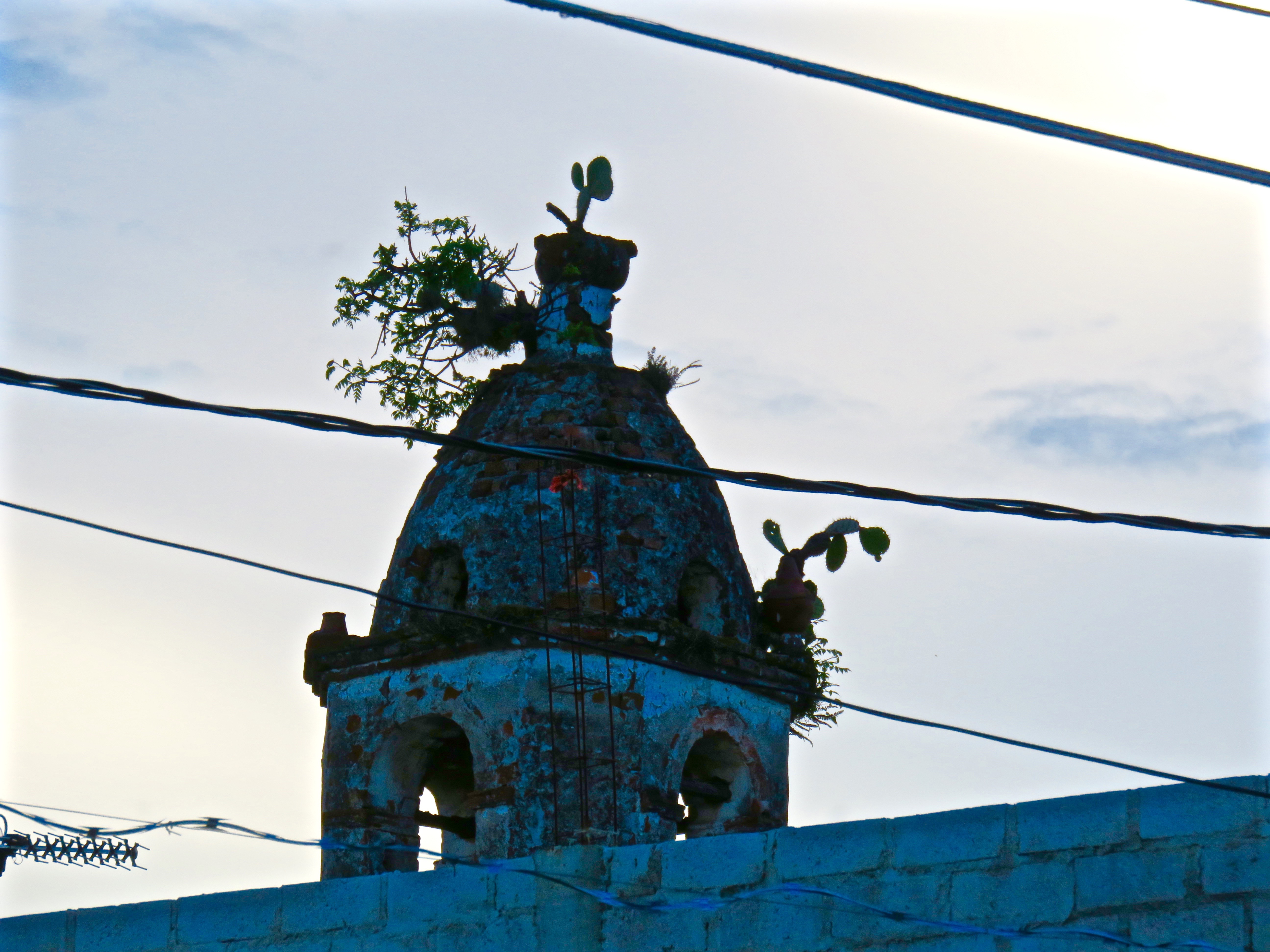 Instead, we strolled by the Hospitalito–the remains of one of the oldest churches in Jalisco, whose ruins now consist of merely this dome with cacti growing out of it and the one remaining broad wall that supports it.