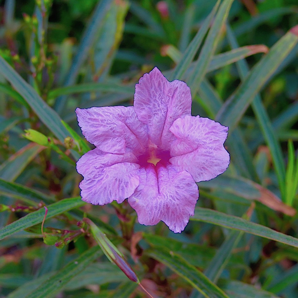 Mexican Petunia–my fast-spreading little garden pest! Here covering the bushes by my pool.