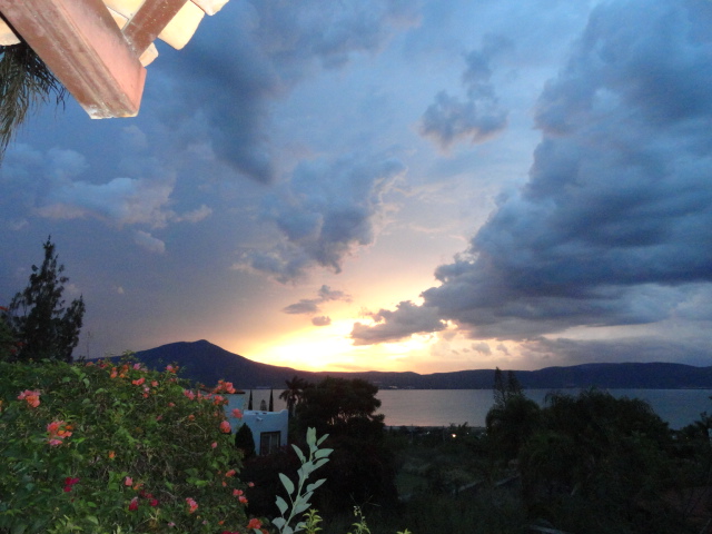 It is early morning and she puts off getting out of bed to face the brisk air. Water is streaming into the pool. She can hear its hiss as the hot volcanic water hits the cooler water of the pool. Pasiano the gardener clears his throat. Later, when Yolanda arrives, the dogs will grow restless and bark to be fed. It is not the bright morning promised by the precognition of the weather channel. Even through the white scrim of the manta cloth drapes, She can tell that the sun is muted. The past two days have been marked by intermittent rain showers coming from a sky permanently cottoned-over by a layer of clouds that now and then the sun peeks through. As she lies in bed typing, she can see a light ray through the curtains, but it fades quickly away.