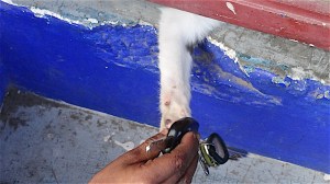 He still bears the scars of the rooster’s last abuse.