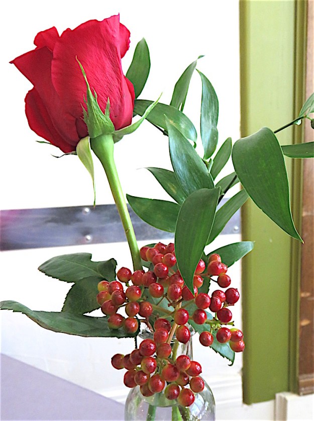 a declaration of his love— single long-stemmed rose.