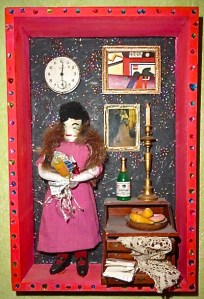 (Just kidding, Dolly.) Prompt words today are caramel, abundant, oration, variegation, and golden. Retablo and photo by jdb.