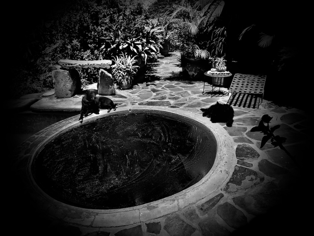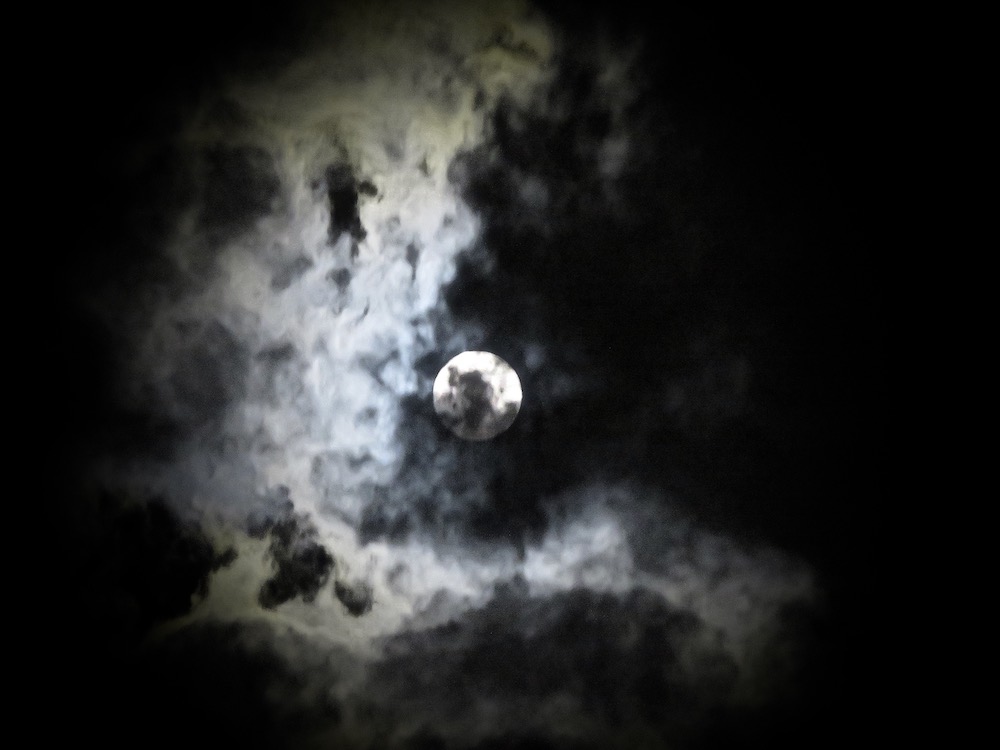 More than his memory, it was his scent that awakened me to the full moon scrimmed by clouds. I moved to the sliding doors and out to the jacuzzi. Who else in this world would float on the surface of the water under this remarkable moon? The curious cat came to bear company, and the dogs. One hummingbird whirred incongruous over blooms in the night. This pulse in my ear of hummingbird and blood drew one mosquito into its chorus, annoying and persistent, to drive me into the water as easily as his scent had pulled me out of my shell of troubling dreams into the glowing night. A hand smoothed a path in the water, as if to welcome me. “If you are a dreamer, come in,” he said.