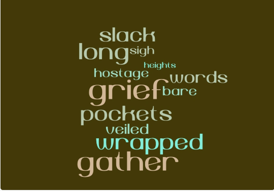 The words for The Sunday Whirl Wordle 623 are: slack grief hostage gather bare heights wrapped words pockets long veiled sigh