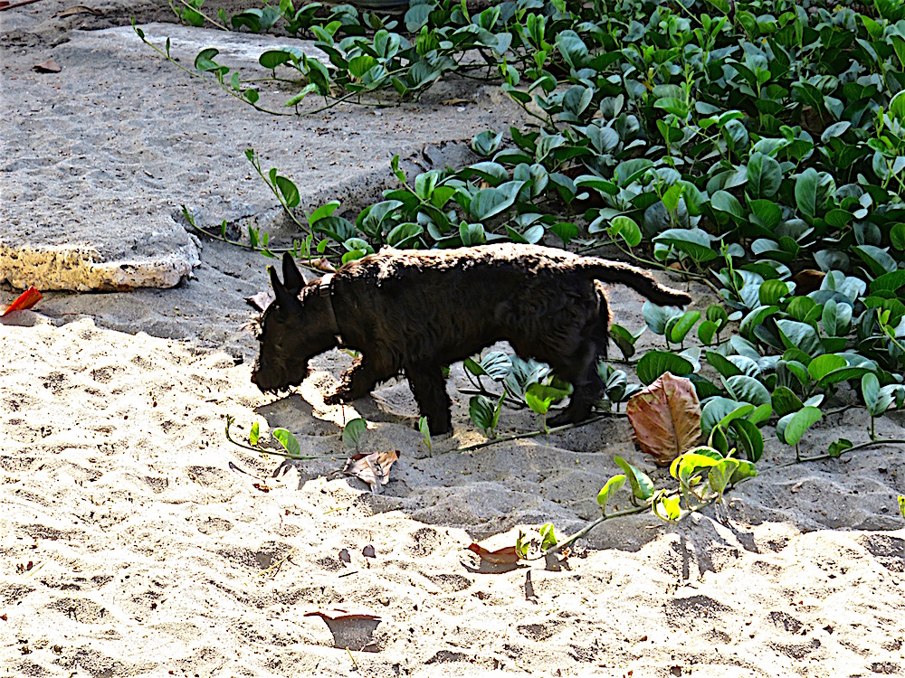 I’ve had a terrible bronchial infection for the past two weeks and indications are that I’m allergic to Coco. I tried making Zoe and Coco sleep out in the doggie domain with Morrie, but they cried for two hours, so they are back inside but somehow, Coco seems to realize my problem and she has shifted from sleeping right beside my neck to getting as far away from my face as possible while still touching me, so she sleeps pressed up against my leg, knee to ankle, or with her chin over my foot. Zoe has switched down to sleep in her own little bed right next to the bed. Fingers crossed that this will work. They are so dear. Zoe and Coco are constant companions and Morrie sometimes joins in the chase. I feel bad, knowing he is missing Diego, so I’ve been putting the girls out all day to keep him company and sometimes he sleeps on a comfy lawn chair right outside my bedroom door that I leave cracked a bit so the dogs can get out if they need to. Peaceable kingdom. The cats still don’t like the new intruder, but they have their own safe area out in front that is not accessible to the dogs.